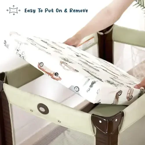 Позаботьтесь о комфорте и безопасности вашего малыша с комплектом простыней GRSSDER Pack n Play! Этот специальный набор из 2 штук, изготовленный из ультрамягкой трикотажной ткани и эластичной конструкции, нежно касается нежной кожи вашего малыша, обеспечивая при этом идеальную посадку на стандартные матрасы Pack n Play. Нейтральный дизайн с автомобилями добавляет элегантности любой детской комнате. Эти простыни, разработанные для обеспечения спокойного сна вашего ребенка, остаются на месте в течение дня и обеспечивают безопасную среду.