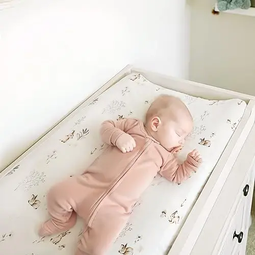 Prioritize your baby's comfort and safety with the GRSSDER Stretch Ultra Soft Jersey Knit Changing Pad Cover Set. This 2-piece set is designed with a stylish and adorable Watercolor Rabbit pattern, making it a perfect fit for both baby boy and girl nurseries. Made from high-quality, ultra-soft, and stretchy jersey fabric, these changing pad covers gently touch your baby's delicate skin and provide a comfortable feel all day long. Thanks to its flexible structure, it easily fits all standard 32"/34" x 16" changing pad sizes. Designed by mothers for mothers, these covers combine practical use and aesthetic appearance. If you want to ensure your baby's comfort while changing their diaper and are looking for a stylish look, GRSSDER changing pad covers are just for you! Its easy-to-clean feature saves you time in your busy schedule. The machine-washable feature offers hygienic use, while the quality of the fabric ensures that the colors do not fade and do not pill. GRSSDER aims to provide the best for your baby's health and comfort. Therefore, all materials used in our products are carefully selected. It does not contain any substances that could harm your baby's skin. Moreover, it adds a unique touch to your baby's room with its stylish design. GRSSDER changing pad covers are not just a cover, but a practical solution for your baby's comfort and for you. It can also be a great gift option for your loved ones who have babies. Choose GRSSDER quality to make your baby's diaper changing experience more enjoyable and practical. With its softness, flexibility, and stylish design, GRSSDER changing pad covers will be an indispensable part of your baby's room. It also simplifies the lives of parents by offering practical solutions in our rapidly changing lives. With GRSSDER, your baby's comfort and your convenience are always at the forefront. This product cares for your baby's sensitive skin while offering you ease of use. GRSSDER is designed with the best for your baby and you in mind.