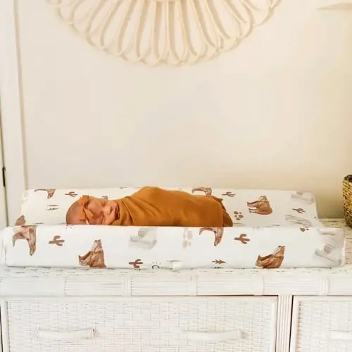 Combine comfort and safety in your baby's diaper changing experience with the GRSSDER Stretchy Ultra Soft Jersey Knit Changing Pad Cover Set! This set, consisting of two adorable Sunny Bear printed changing pad covers, offers a practical and stylish solution. Perfectly fitting standard 32" / 34" x 16" changing pads, these covers offer gentle touches to your baby's delicate skin. Thanks to the blend of high-quality jersey fabric with 5% spandex, it has an ultra-soft and four-way stretchable structure. This provides maximum comfort for your baby while changing diapers and helps them feel comfortable all day long. GRSSDER changing pad covers help keep your baby's skin dry and cool thanks to their breathable and sweat-absorbing properties, thus minimizing diaper rash. Designed by mothers for mothers, these covers combine ease of use and aesthetic appearance. The stylish Sunny Bear pattern adds a warm and cute atmosphere to your baby's room. Thanks to the elastic band, it can be easily placed on the changing pad and stays firmly in place, so it does not slip even during sudden movements. Being machine washable makes it extremely easy to clean. High-quality jersey fabric does not shrink or fade after washing and offers long-lasting use. GRSSDER changing pad covers, which do not contain any harmful substances that could harm your baby's health, are a product that you can use with peace of mind. If you want to give an unforgettable gift to your loved ones who have babies, this set will be a perfect choice. As GRSSDER, we always prioritize customer satisfaction. If you have any questions or concerns about our products, our 24/7 customer service will be happy to assist you. If you are not satisfied with the product you purchased, we offer a 30-day money-back guarantee. Prioritize your baby's comfort and safety with GRSSDER!