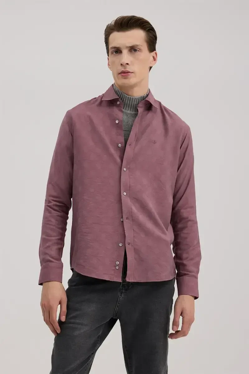 Gül kurusu ko'ylak, comfort fit, viskon ko'ylak, naqshli ko'ylak, uzun yengli ko'ylak, qulay ko'ylak, zamonaviy ko'ylak, kundalik ko'ylak, viskon aralashmasi, erkaklar ko'ylagi