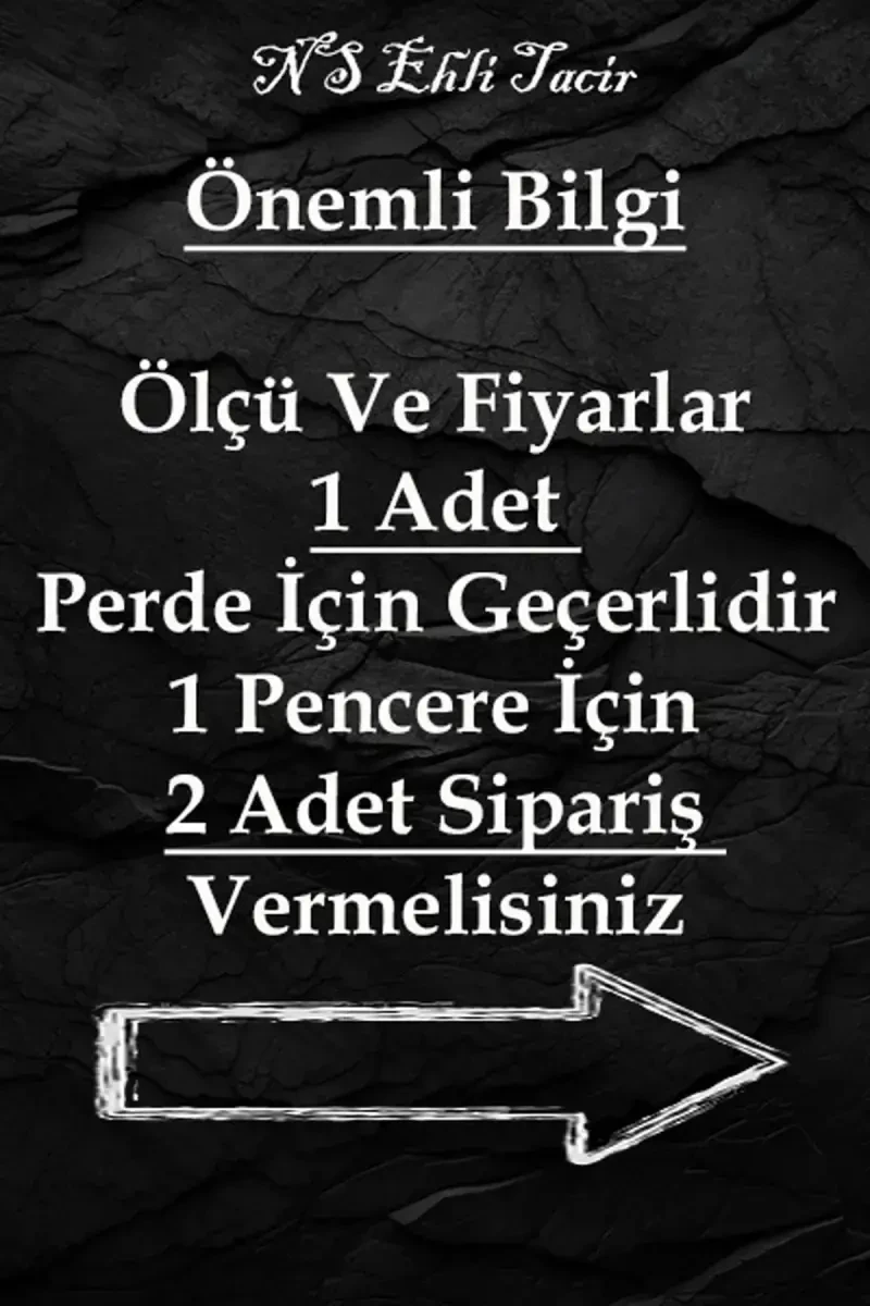 Ölçüler ve fiyat 1 adet fon perde için geçerlidir. Farklı zamanlarda verilen siparişlerde ton farkı olabileceği için aynı oda için sipariş verilen ürünlerin tek siparişte toplanması önemlidir. Tek pencere için hem sağ hem de sol tarafı kullanmak için 2 adet sipariş vermeniz gerekmektedir. Pencere ölçünüz 3 metre civarındaysa, 1 pencere için 2 adet 80 cm veya 90 cm en ideal olacaktır. Lütfen tavan ile zemin arasındaki mesafeyi ölçerek boy ölçüsünü sipariş veriniz. Büyük ölçüdeki perdeler hem dekor amaçlı hem de güneşlik olarak kullanıma uygundur.