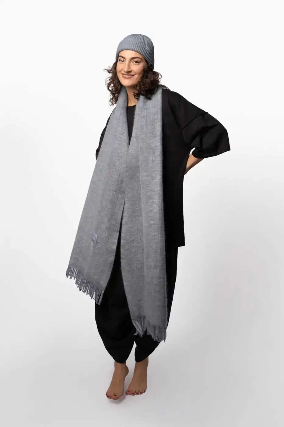 Its soft and lightweight fabric ensures comfort all day long. Its breathable properties also make it ideal for year-round wear. The Silver Oversize Scarf is also a wonderful choice for gifting to loved ones.