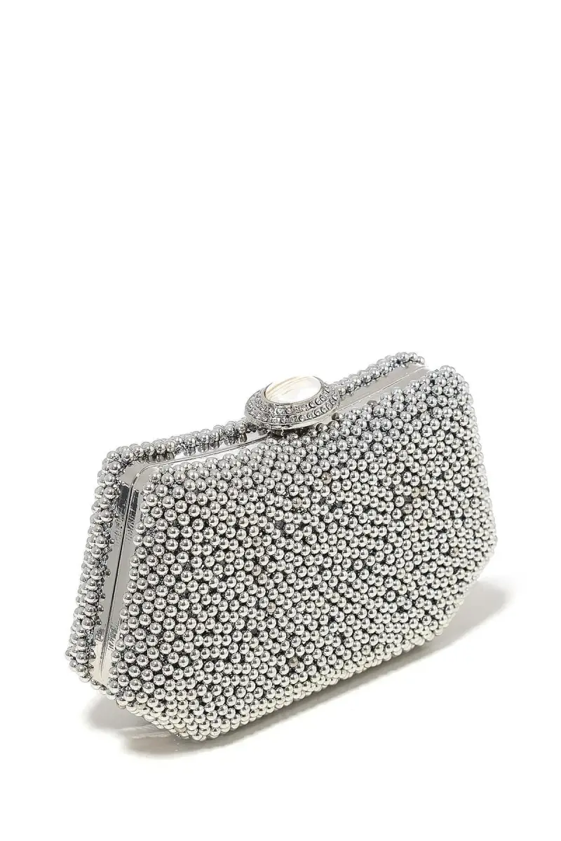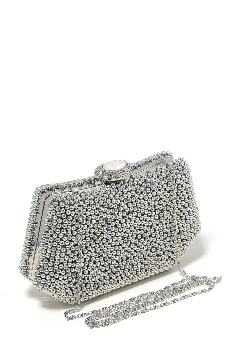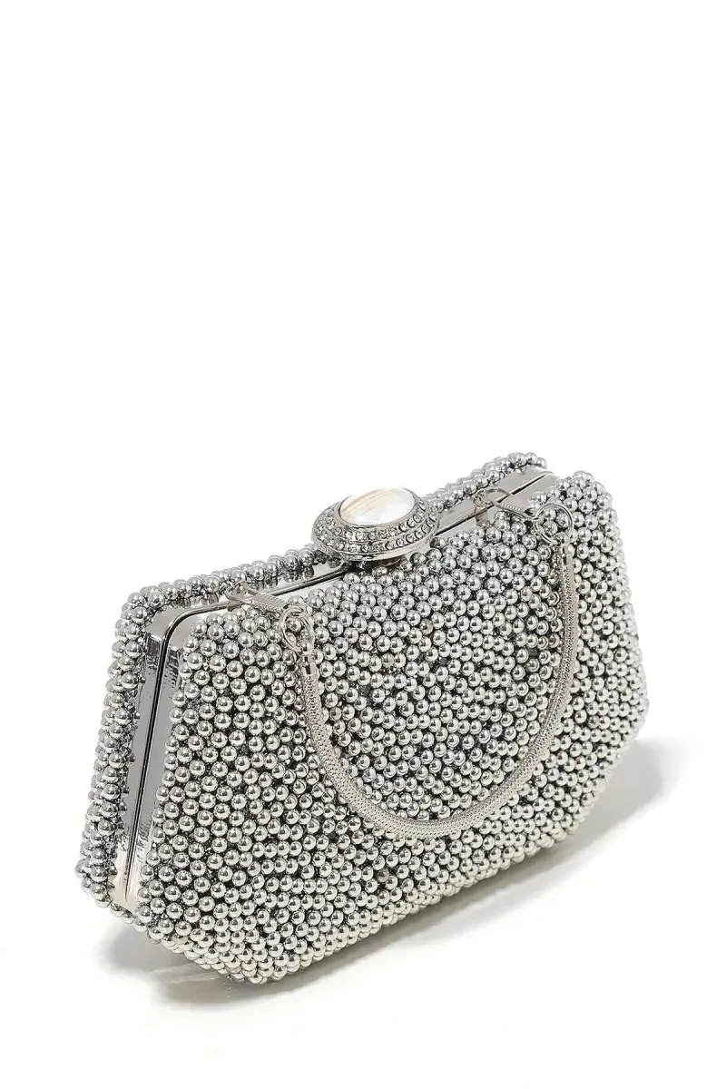 Gümüş Renk İncili Abiye Çanta Sedef Renk Gelin Çantası Abiye Çanta Gece Çantası Portföy Clutch-Gümüş