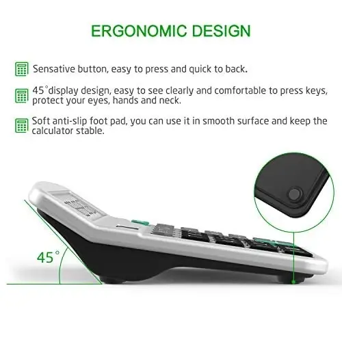 calculator, solar powered, battery powered, dual power, 12 digits, large buttons, portable, office, school, ergonomic
