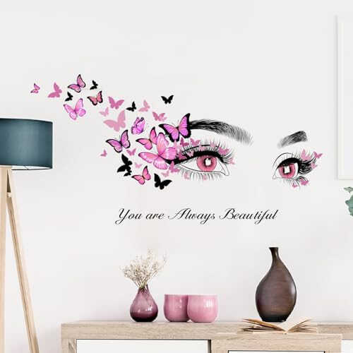 Uchib yurgan kapalaklar va 'Siz har doim chiroyli' iborasi har qanday qarashda sizga quvonch va ilhom baxsh etadigan jozibali ko'rinish yaratadi. Ushbu devori yopishtiruvchilari yotoqxonangiz, mehmonxonangiz, ish joyingiz yoki kiyinish xonangiz uchun mukammal bezak buyumi bo'ladi.