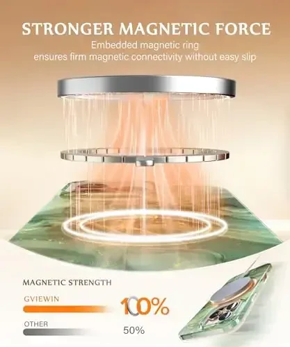 iPhone 16 Pro kılıfı, MagSafe, mermer desenli, askeri düzey koruma, darbe emici, manyetik, ekran koruyucu, kamera lens koruyucu, kablosuz şarj, GVIEWIN