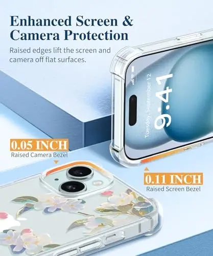 [Compatibility] ONLY compatible with iPhone 15 Plus 6.7 inch (2023 Release). [Full Body Protection] Come with tempered glass screen protector and camera lens protector which can provide full body protection for your phone. Raised edges protect your phone screen and camera surface away damages from scratches and bumps in daily life. Corner bumper can absorb shock of drops up to 10FT. [Non-Yellowing & Chic Fashion] Made of impact-resistant and flexible durable TPU, ensures long lasting clarity, allows to retain phone's original look without losing your own personality. Made of a unique printing technique, these patterns won't rub off, fade or smudge. [Lightweight & Pocket Friendly] The slim phone case brings you greater portability and firmer grip without adding bulk. Precise cutouts ensure easy access to all buttons and ports with great tactile feeling. [Widely Compatible] This case compatible with iPhone 15 Plus also supports wireless charging, car mounts and cell phone ring holders. Any purchases here are backed by quality assurance and 24/7 customer service.