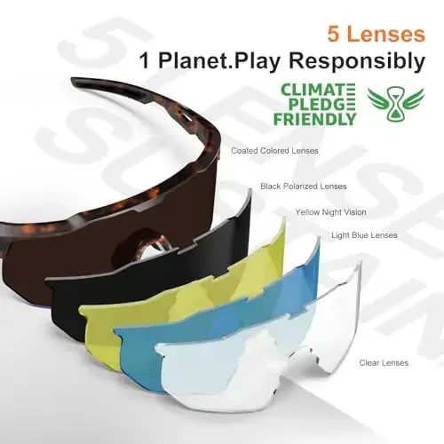 Protect your eyes during your outdoor adventures with HAAYOT Polarized Sports Sunglasses! Designed for men, women, and teens, these versatile sunglasses are ideal for various sports activities such as baseball, cycling, running, and softball. With their stylish design and superior features, HAAYOT sunglasses help you enhance your performance and protect your eye health. Thanks to the 5 different interchangeable lenses included in the set, you can adapt to all kinds of weather conditions and activities. Colored lenses restore vivid colors, black polarized lenses reduce glare, yellow lenses improve night vision, light blue lenses enhance contrast, and transparent lenses provide clarity in rainy weather. Offering all-day comfort with its lightweight TR90 frame, these sunglasses protect your eyes from harmful rays with polarized and UV400 protected lenses, while adjustable nose pads provide a custom fit. Take your style and performance to the next level with HAAYOT sports sunglasses!