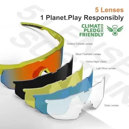 - 5 Interchangeable Lenses: Includes 5 different UV-protected lenses specially designed for different weather conditions and activities.