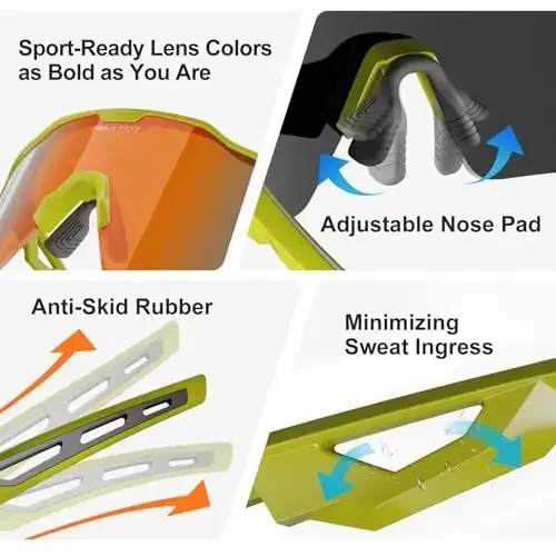 Add clarity and protection to your outdoor adventures with HAAYOT Polarized Sports Sunglasses! Specifically designed for men, women, and youth, these versatile sunglasses guarantee excellent performance in various sports activities such as baseball, cycling, running, and softball. Thanks to 5 different interchangeable lens options, you can adapt to all weather conditions, protect your eyes from harmful rays, and experience the best vision possible. HAAYOT sunglasses combine elegance and functionality, preventing you from sacrificing your style while playing sports. The durable TR90 frame and adjustable nose pads provide maximum comfort even during long-term use. Whether you're blocking glare on a sunny day or enhancing contrast in foggy weather, HAAYOT sports sunglasses are always by your side.