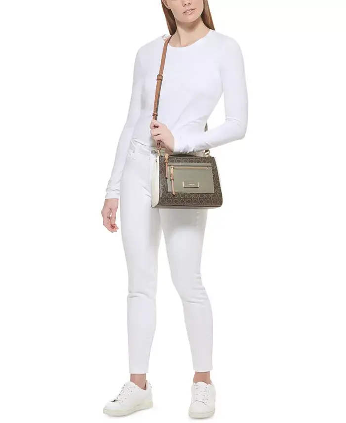 Introducing the Hadley Signature Colorblocked Adjustable Crossbody from Calvin Klein. This elegant bag combines the style and practicality of the modern woman. With its timeless monogram print and perfect shape, it will add a sophisticated touch to any outfit. The harmony of Almond Taupe, Cherub White, and Dove colors gives the bag a unique look, while the adjustable strap offers comfortable use throughout the day. The Hadley Crossbody is not only stylish but also extremely useful. Despite its small size, you can easily carry your daily necessities thanks to its large interior volume. The zippered and open pockets inside help you keep your belongings organized, while the zippered pocket on the outside is ideal for items that require quick access. Gold-tone metal accessories complete the bag's luxurious look and allow it to adapt to any environment. Whether for daily use or a special event, the Hadley Crossbody is the perfect choice to complete your elegance. It offers long-lasting use thanks to its high-quality faux leather material and polyester lining. Designed with Calvin Klein quality, this crossbody bag will be an indispensable part of your wardrobe. The Hadley Crossbody, an ideal choice for women looking for style and functionality, will add value to your every moment. This bag, which attracts attention with its monogram pattern, modern color block design, and useful interior structure, is a candidate to be the favorite of stylish women. Reflect your style and always stay stylish with the Hadley Crossbody. This bag will be not just an accessory but also an expression of your personality. Choose the Hadley Crossbody to feel special and complete your style. Produced with Calvin Klein's unique design approach, this bag reflects quality and elegance in every detail. Offering practicality and elegance together in the hustle and bustle of daily life, this bag will be one of the most loved pieces of your wardrobe. Make a difference in every moment and let your style speak with the Hadley Crossbody.