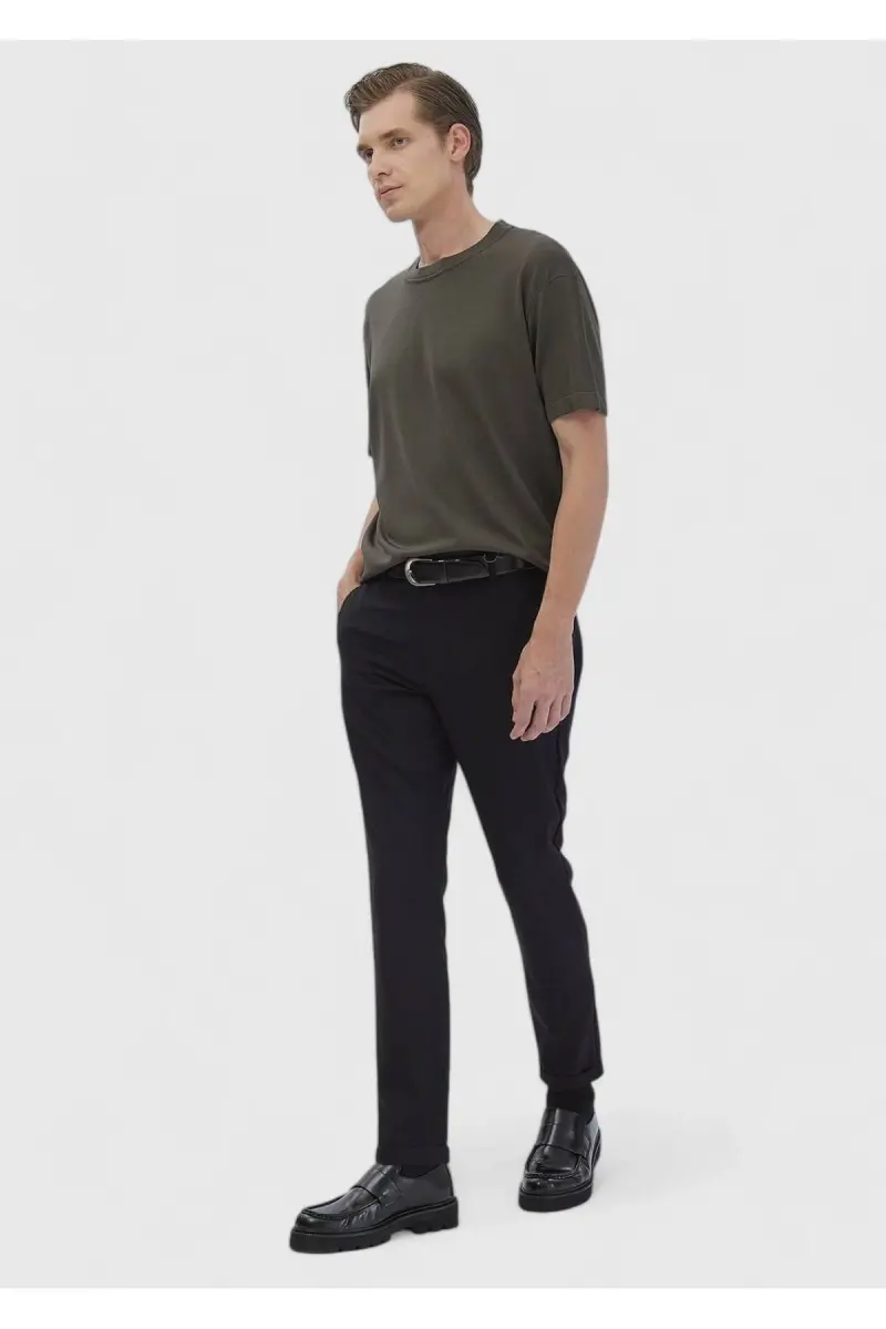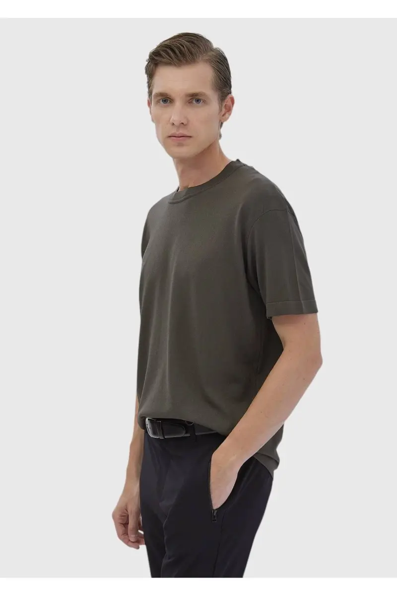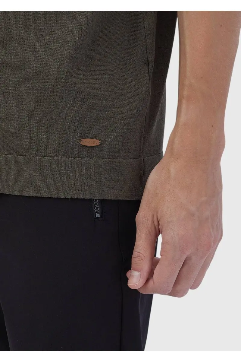 Haki Bisiklet Yaka Düz Örgü Triko-Haki