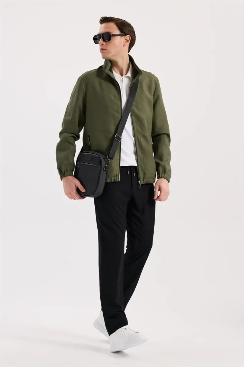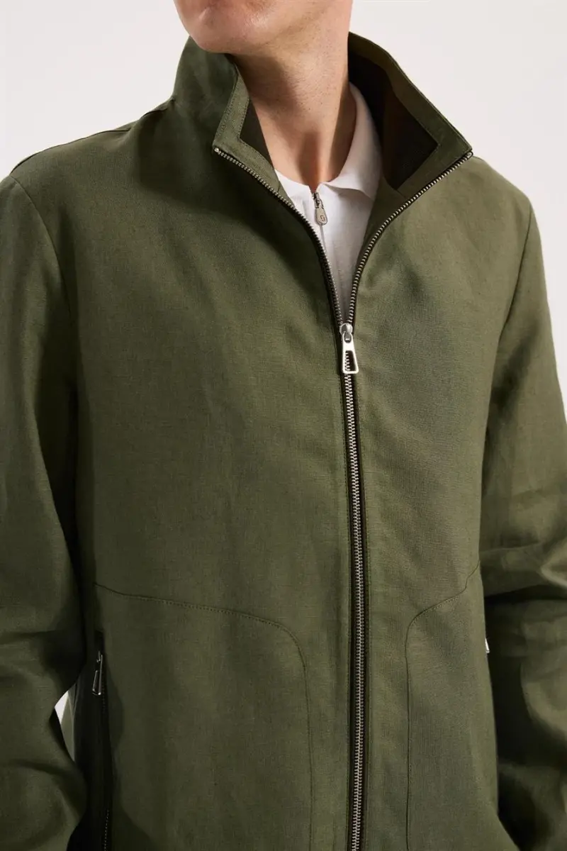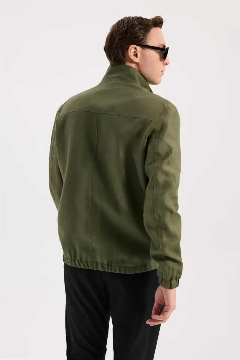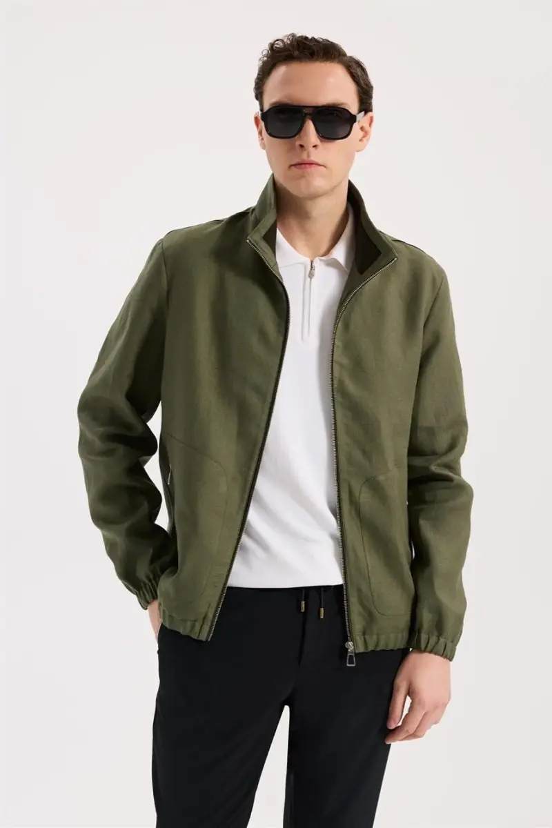 Haki Comfort Fit %100 Keten Mevsimlik Spor Mont