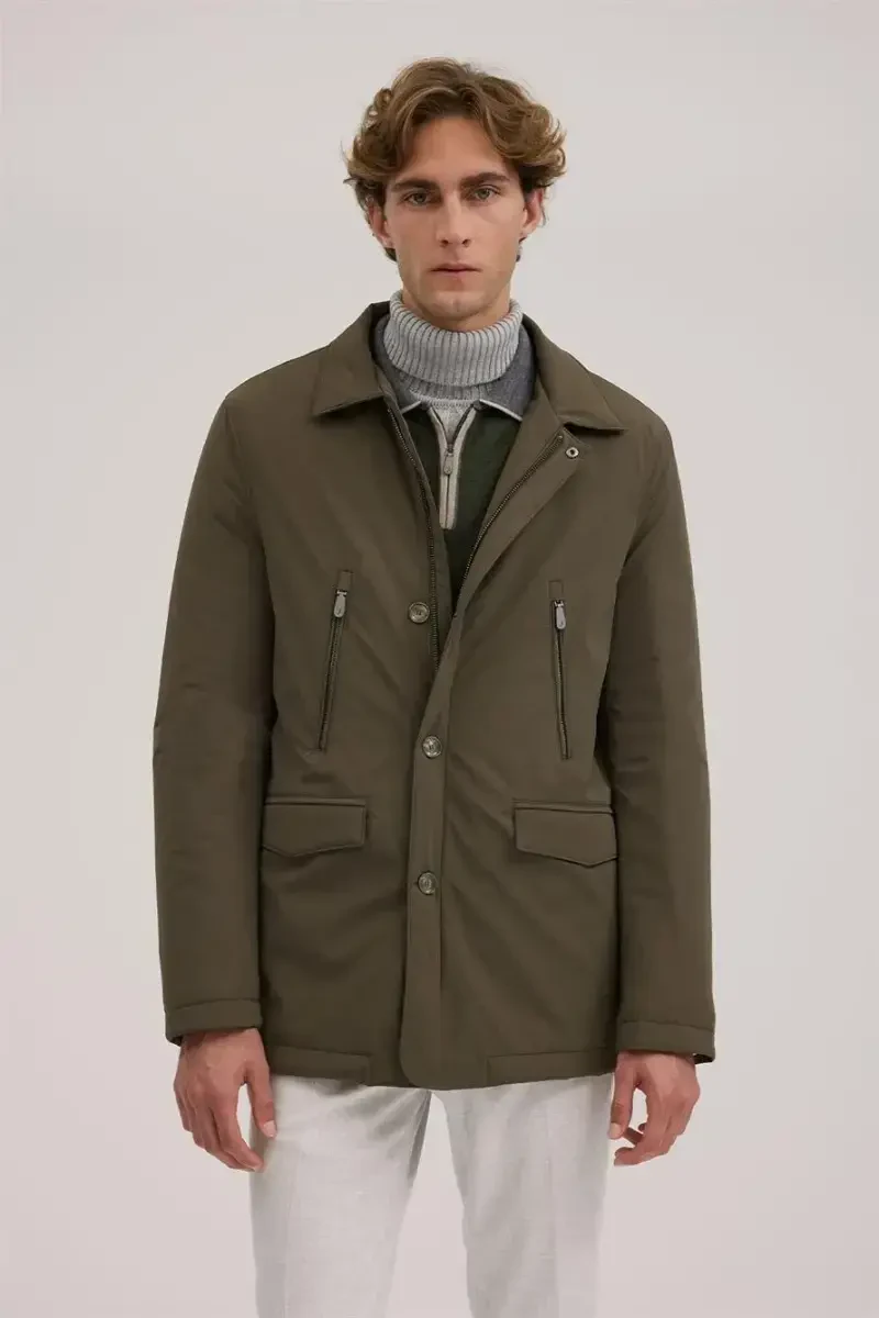 Haki mont, qulay bichimli mont, erkaklar monti, bebi yoqali mont, fermuarli mont, chiroyli mont, qulay mont, qishki mont, haki erkaklar monti, mavsumiy mont