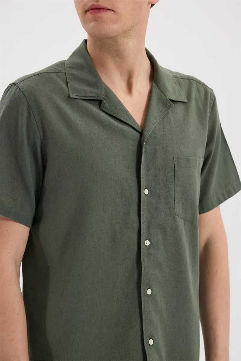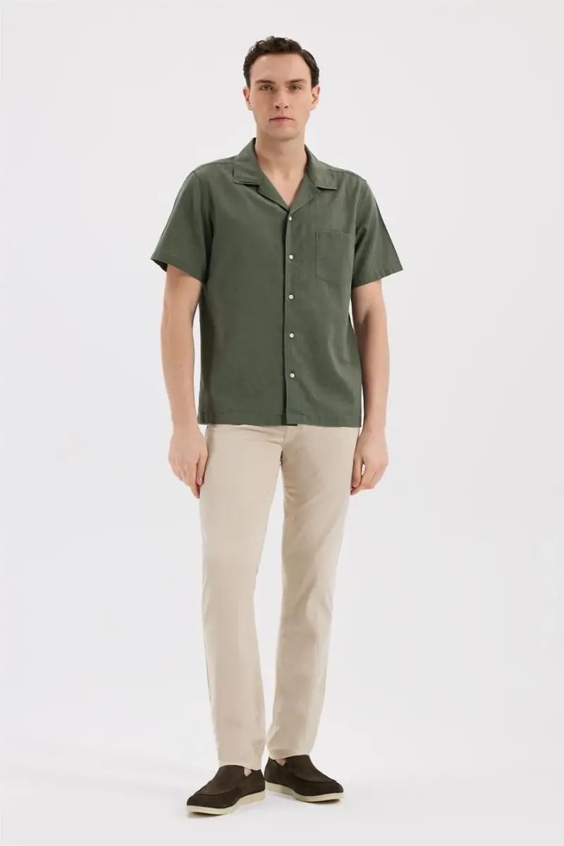 Haki Comfort Fit Klasik Yaka Kısa Kol Gömlek