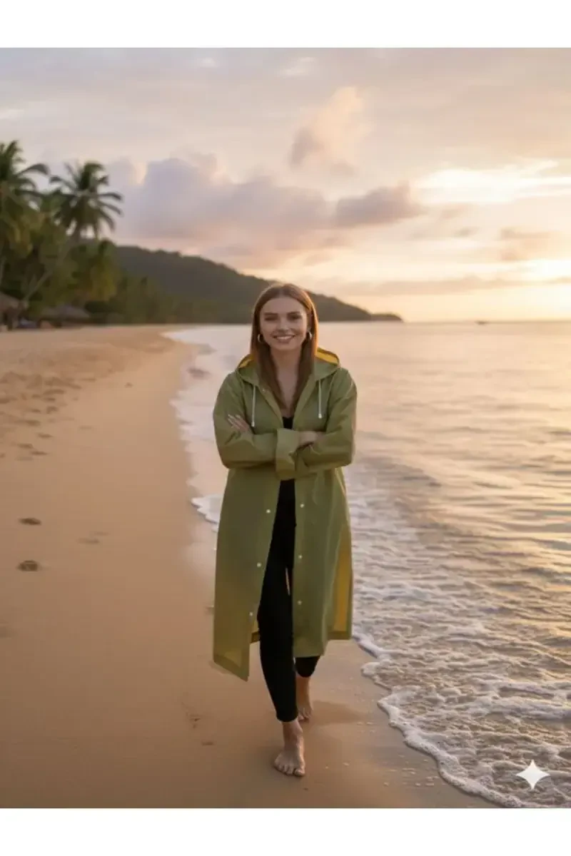 Khaki Eva Fabric Water Wind Proof Raincoat-Khaki