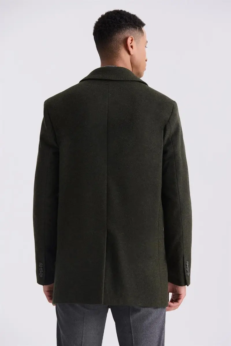 Haki Klasik Fit Berberi Yaka Yünlü Kaşe Kaban: Soğuktan Koruyan Şıklık