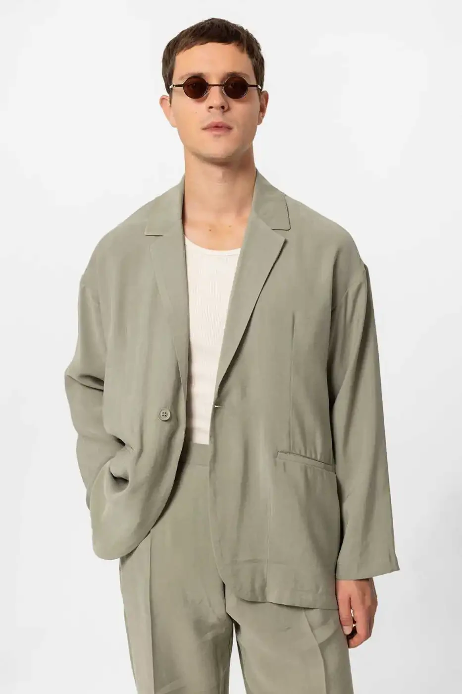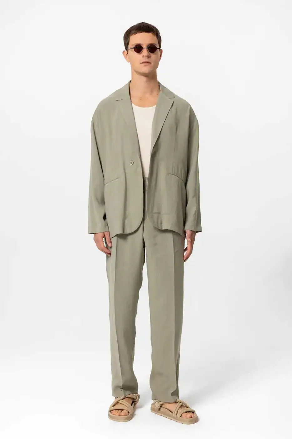 Agar siz o'zingizning uslubingizni aks ettiruvchi, nafis va qulay blazer qidirsangiz, Haki Rangli Erkaklar Uchun Keng Kesimli Astarsız Blazer Jilet siz uchun! Hoziroq buyurtma bering va uslubingizga yangi o'lcham qo'shing.