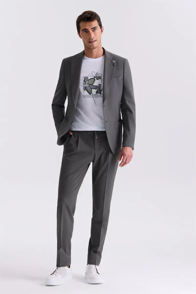 Haki Slim Fit Mono Yaka Spor Takım Elbise