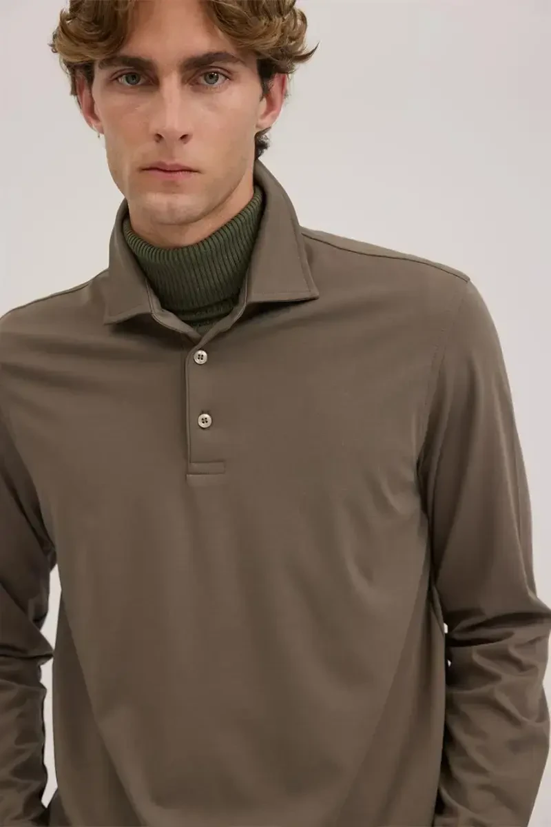 Haki Slim Fit Polo Yaka Erkek Sweatshirt | Viskon Karışımlı Şık Tasarım