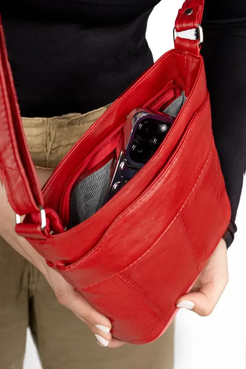 deri çanta, fermuarlı bölme, omuz askısı, günlük çanta, hakiki deri, Türkiye üretim, kadın çanta, ayarlanabilir askı, küçük çanta, çapraz çanta