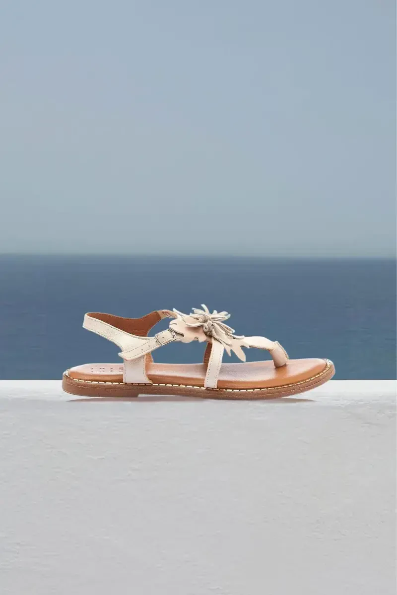 Stil va qulaylikni uyg'unlashtiradigan, oq rangli haqiqiy zamshdan tikilgan yuqori qismi va gulli barmoq orasidan o'tadigan qismi bilan bu sandal sizning yozgi must-have bo'ladi. Qahva rangli haqiqiy teri bilakdan bog'lanadigan tafsilot noyob uslubni taqdim etadi. Yengil va nafas oladigan tuzilishi kun bo'yi qulaylikni ta'minlaydi, zamonaviy dizayni esa har qanday kiyim bilan mukammal mos keladi. Oyoqlaringiz go'zalligini va uslubini ta'kidlaydigan bu sandal sizning maxsus kunlaringiz uchun ajoyib tanlov bo'ladi.