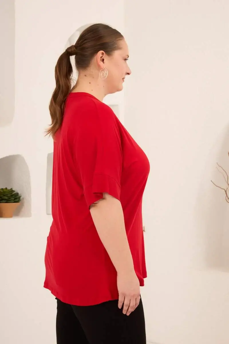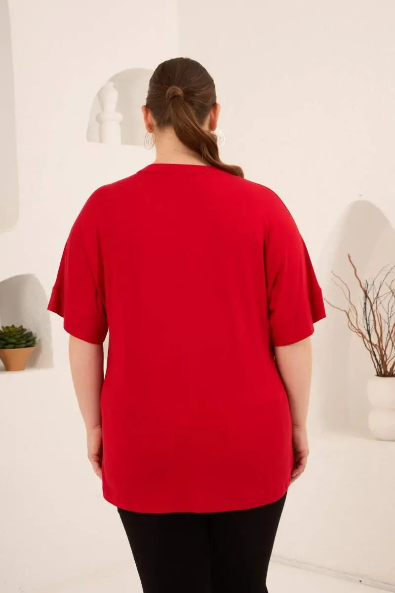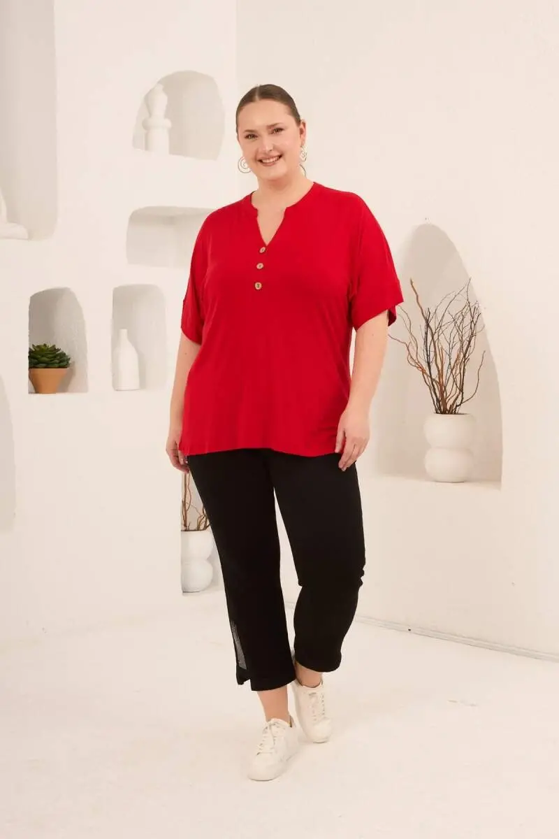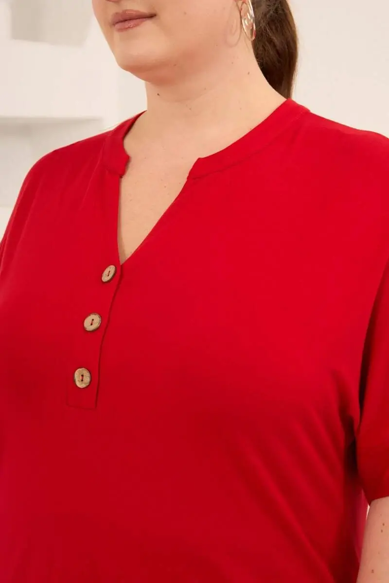 Hakim Yaka Büyük Beden Düğmeli Bluz Kırmızı