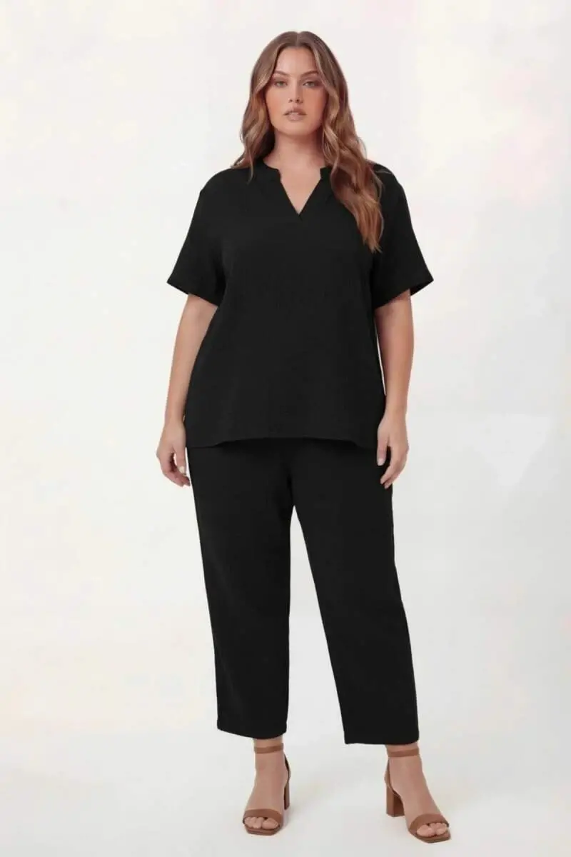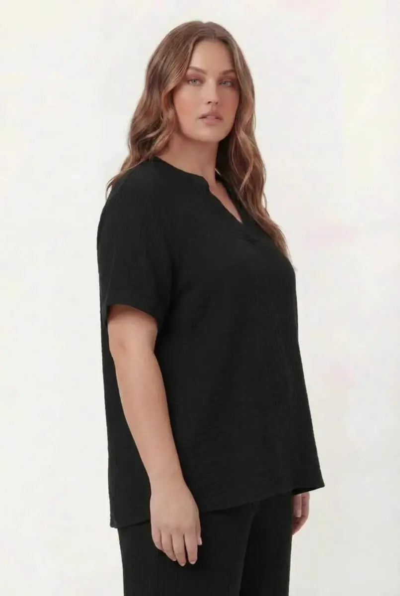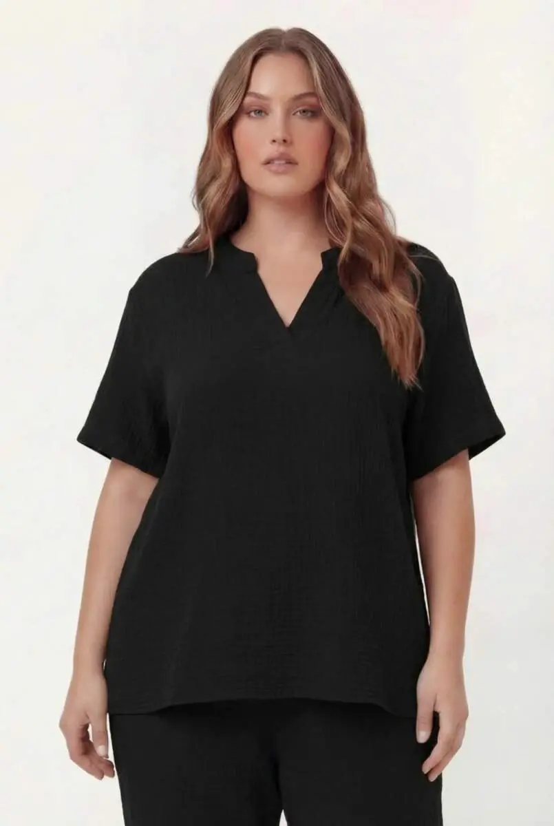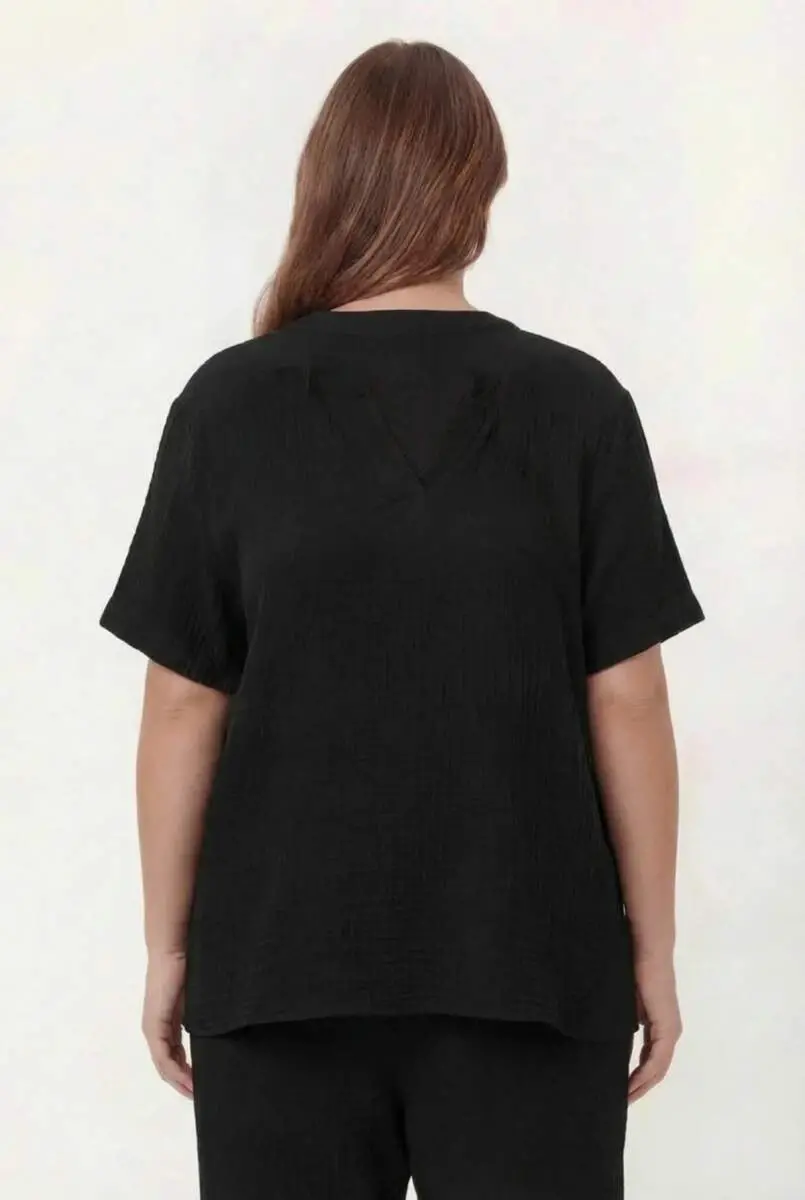 Hakim Yaka Büyük Beden Müslin Kumaş Bluz Siyah