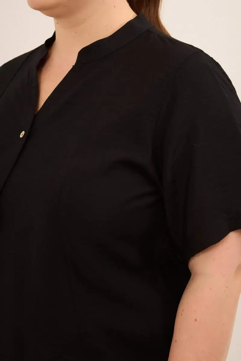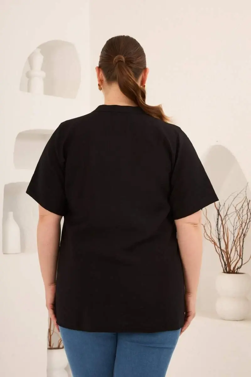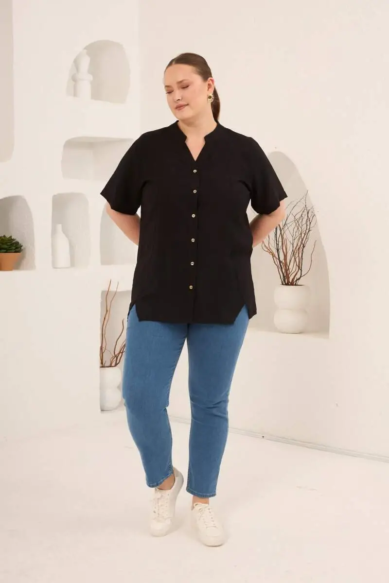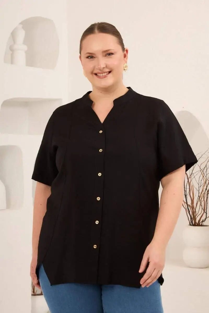 Hakim Yaka Ön Yırtmaçlı Kadın Büyük Beden Gömlek Siyah