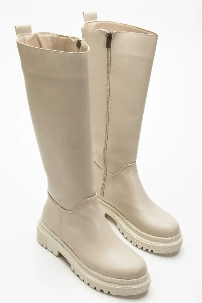 Halaf Knee-High Long Zippered Beige Women's Boot is designed for the stylish and comfortable steps of the modern woman. This elegant boot, with the warm tones of beige, easily adapts to every outfit and is a candidate to be one of the most preferred pieces of your wardrobe. The knee-high length is an ideal option to complete your elegance both in daily use and on special occasions. The zippered structure offers a practical wearing experience, while ensuring that the boot fits your foot perfectly, helping you to be comfortable all day long. Thanks to its high-quality material and careful workmanship, Halaf boot offers a long-lasting use, allowing you to experience comfort without sacrificing your style. Whether you combine it with skinny jeans or skirts, this boot will always highlight your elegance. The neutral and sophisticated stance of the beige color allows you to create different combinations by harmonizing with all kinds of colors and patterns. Halaf Knee-High Long Zippered Beige Women's Boot is not just a shoe, but also a style statement. This special design, which combines elegance, comfort and quality, is a must-have in every woman's wardrobe. In your daily rush, at the office or at a special invitation, this boot, which will accompany you in every environment, is the most stylish way to reflect your style. The timeless appeal of the beige color and the modern design of the boot will always give you a trendy and stylish look. Make a difference with every step with the Halaf Knee-High Long Zippered Beige Women's Boot. Remember, style is hidden in the details, and this boot is a perfect choice to add an elegant touch to your style. With this boot that offers both comfort and elegance, you will feel confident and stylish all day long. With its fashionable design and useful structure, the Halaf Knee-High Long Zippered Beige Women's Boot is a shoe that adorns every woman's dreams.