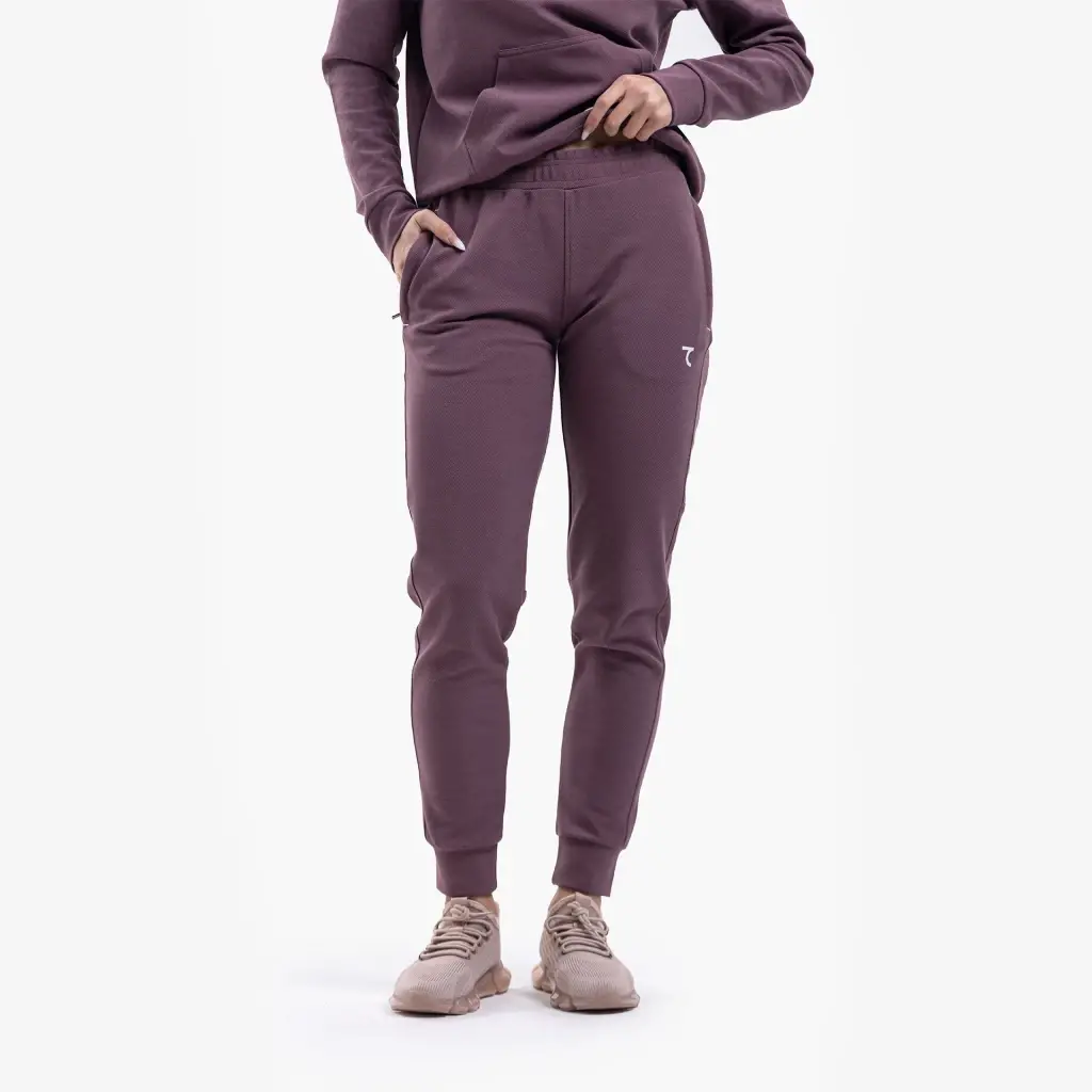 It is recommended to pay attention to the washing instructions so that your product can maintain its form for a long time. Washing it with similar colors, inside out, and at a low temperature preserves the vitality and elasticity of the fabric texture. Drying by natural means should be preferred instead of using a dryer. This stylish and comfortable Damson colored tracksuit is specially produced for women who do not compromise on aesthetics in sportswear.