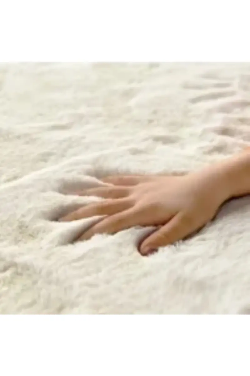 Halı Krem Tavşan Post Kaymaz Taban Kalın Peluş Halı - Yolluk-Krem