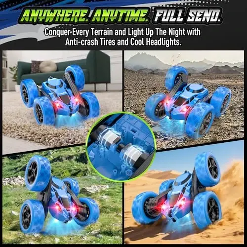 Hamdol Remote Control Stunt Car for Kids bilan hayajonli sarguzashtga otlaning! Ushbu 360° aylanadigan, ikki tomonlama RC o'yinchoq mashinasi bolalarning tasavvurlarini rag'batlantirish va ularga soatlab qiziqarli o'yin-kulgi taqdim etish uchun mo'ljallangan. Yorqin LED faralari va mustahkam 4 g'ildirakli tortish tizimi bilan ushbu mashina ham ichki, ham tashqi makonlarda unutilmas tajribalar taqdim etadi. 6-12 yoshli o'g'il bolalar uchun ajoyib sovg'a tanlovi bo'lgan ushbu STEM o'yinchoq o'rganishni qiziqarli tarzda rag'batlantiradi. Ikki tomonlama dizayni tufayli bolalar mashinani 180° aylantirib, boshqa ko'rinishga ega bo'lishlari va o'yinlariga xilma-xillik qo'shishlari mumkin. Ushbu xususiyat bolalarning makoniy xabardorligini, qo'l-ko'z muvofiqligini va motor qobiliyatlarini rivojlantirishga yordam beradi, shuningdek, ularga ekranlardan uzoqda, interaktiv o'yin-kulgi taqdim etadi. Bir tugmani bosish orqali amalga oshiriladigan akrobatik harakatlar bolalarga o'z mahoratlarini namoyish etish va o'ziga ishonchni oshirish imkonini beradi. Hamdol RC mashinasi uzoq muddatli o'yin zavqi uchun ikkita 3,7V qayta zaryadlanuvchi batareya bilan jihozlangan. Har bir batareya taxminan 30 daqiqa o'yin vaqtini ta'minlaydi va USB-C zaryadlash xususiyati tufayli osonlik bilan zaryadlanishi mumkin. Batareyani tez almashtirish xususiyati o'yinning uzluksiz davom etishini ta'minlaydi va bolalarning ochiq havoda sarguzashtlarini yanada qiziqarli qiladi. Yorqin LED faralar mashinani tungi haydashda yanada qiziqarli qiladi va bolalarning tasavvurlarini rag'batlantiradi. Yuqori sifatli ABS material va zarbani yutuvchi shinalar tufayli Hamdol RC mashinasi o't, qum, gilam, kafel va tashqi yo'llarda muammosiz harakatlana oladi. Mustahkam tuzilishi sarguzashtli o'yinlarga chidamlilikni ta'minlaydi va bolalarning turli muhitlarda xavfsiz o'ynashiga imkon beradi. Yumaloqlangan qirralar, toksik bo'lmagan materiallar va engil ergonomik dizayn kichik qo'llar uchun xavfsiz ushlashni ta'minlaydi. Ushbu interaktiv RC mashina muammoni hal qilish, makoniy fikrlash, reflekslarni rivojlantirish va mexanik tushunchani rag'batlantirish orqali STEM ta'limiga hissa qo'shadi. Bolalar akrobatik harakatlarni mohirlik bilan bajarib, ham zavqlanadilar, ham tanqidiy fikrlash qobiliyatlarini rivojlantiradilar. Hamdol RC Stunt Car tug'ilgan kunlar, Rojdestvo, Pasxa yoki boshqa maxsus kunlar uchun ajoyib sovg'a tanlovidir. 2.4GHz anti-parazit texnologiyasi tufayli bir nechta RC mashinalari bir vaqtning o'zida muammosiz poyga qila oladi, shuning uchun aka-uka, do'stlar yoki sinfdoshlar xavfsiz tarzda raqobatlasha oladilar va ijtimoiy aloqalarini mustahkamlashlari mumkin.