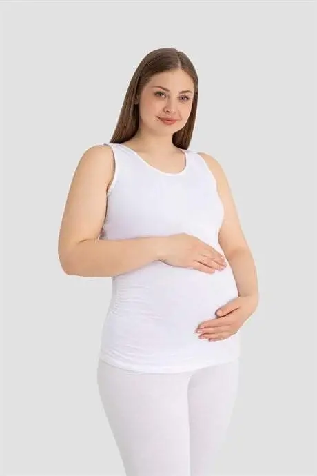 Hamile Atlet Kalın Askılı Pamuklu Likralı Esnek Beyaz 3'lü Paket