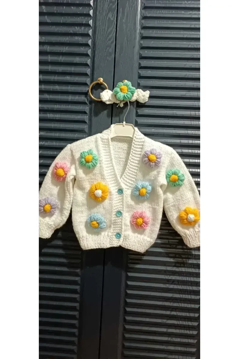 Meet the Hand-Knitted Floral Girl Cardigan that will keep your little princesses warm and add elegance! The innocence of snow white, combined with the elegance of hand-knitted flowers, will add a different atmosphere to your girls' wardrobe. This special design cardigan stands out not only with its appearance but also with its quality and comfort. Being made of 100% cotton yarn offers a soft touch to your child's sensitive skin all day long, while its anti-allergenic feature minimizes the risk of allergic reactions. We understand your maternal sensitivity and prioritize the health of your little ones. Hand-knitted flower details give the cardigan a unique and cute look, adding a different dimension to your child's outfit. Each flower is carefully hand-knitted, increasing the value and uniqueness of the cardigan. The button closure makes it easy to put on and take off the cardigan, while not restricting your child's freedom of movement. You can easily choose this cardigan for daily use or special occasions, and it will complement your child's style. The snow white color can be easily combined with all kinds of clothes, so your child will always look stylish and harmonious. This cardigan is not just a piece of clothing, but also a memory knitted with love. Your child will feel your affection and care while wearing this cardigan. Remember, the Hand-Knitted Floral Girl Cardigan will warm both your child's inside and outside.