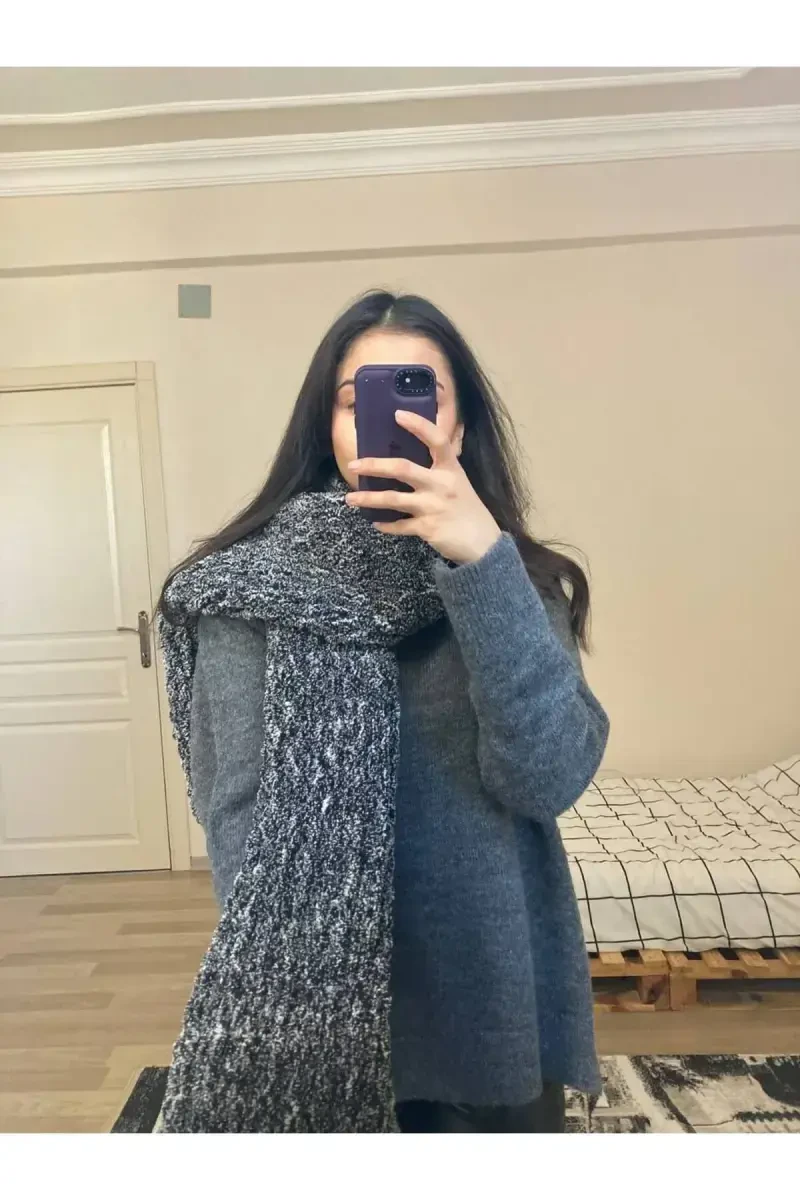 Hand Knitted Puffy Scarf Shawl - Mottled is a unique accessory that will both complement your style and keep you warm in cold weather. With its soft texture and eye-catching mottled colors, this scarf shawl is a candidate to be an indispensable part of your wardrobe.**Product Description**Add a stylish touch to cold winter days with the Hand Knitted Puffy Scarf Shawl - Mottled. This scarf shawl is hand knitted with carefully selected, high quality yarns. Its puffy texture gives the scarf a unique volume and softness, while its mottled colors easily match any outfit. Whether you want a casual look with your daily outfits or use it as an elegant detail for a stylish dinner, this scarf shawl will accompany you in any situation. It keeps your neck and shoulders warm in cold weather, while also highlighting your style. The fact that it is hand knitted makes each scarf shawl unique. This makes it not only an accessory, but also a means of personal expression. The lightweight structure of the scarf allows you to use it comfortably throughout the day, while its durable yarns offer long-lasting use. Hand Knitted Puffy Scarf Shawl - Mottled is both a perfect gift option for yourself and one of the warmest ways to make your loved ones happy. Enjoy the cold weather with this unique scarf shawl and always take your style one step further. The mottled texture of the scarf offers a rich look with the harmony of different color tones. Thanks to this, you can easily combine the scarf with your clothes in different colors. Whether you use it with a single-colored coat or complete it with a patterned blouse, this scarf shawl will add a sophisticated touch to your style in any case. In addition, the dimensions of the scarf allow you to try different tying styles. You can get a classic look by wrapping it around your neck, create a more relaxed style by laying it over your shoulders like a shawl, or create a different style by tying it around your head. Hand Knitted Puffy Scarf Shawl - Mottled is not only an accessory, but also a style statement. Stay warm and protect your elegance with this scarf shawl, each stitch of which has been carefully knitted.**Product Features*** Hand knitted* Puffy textured* Mottled colored* Made of high quality yarn* Light and comfortable* Versatile use (scarf, shawl, headscarf)* Keeps warm in cold weather* Stylish and elegant design* Compatible with different combinations* Long-lasting use**Additional Information**Hand washing of the product is recommended. Dry by laying. Do not use bleach. There may be slight differences in the color tones of the product due to screen settings. Minimal differences may be seen in sizes as it is handmade.