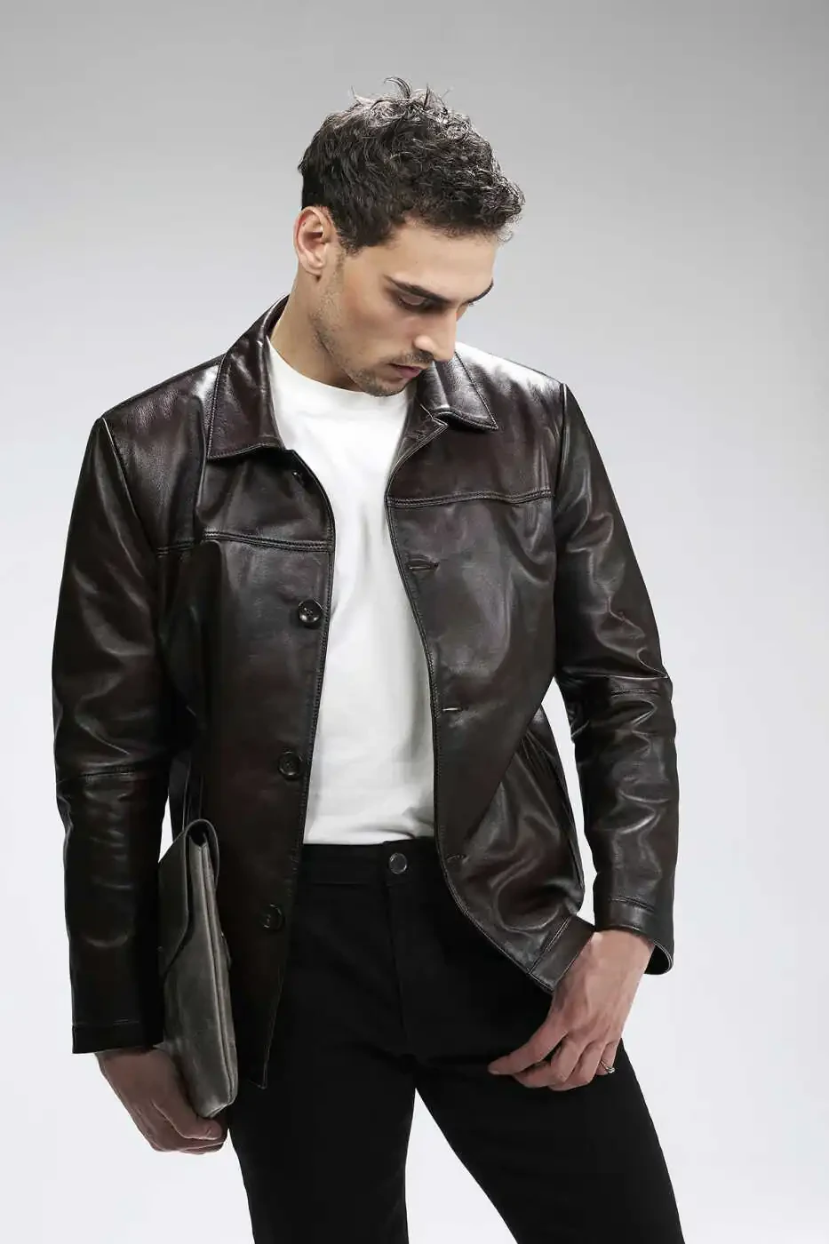 Hannover Erkaklar Klassik Haqiqiy Charm Terisi Ko'ylagi Yoqa Tugmali Qahva Rangining Xususiyatlari: