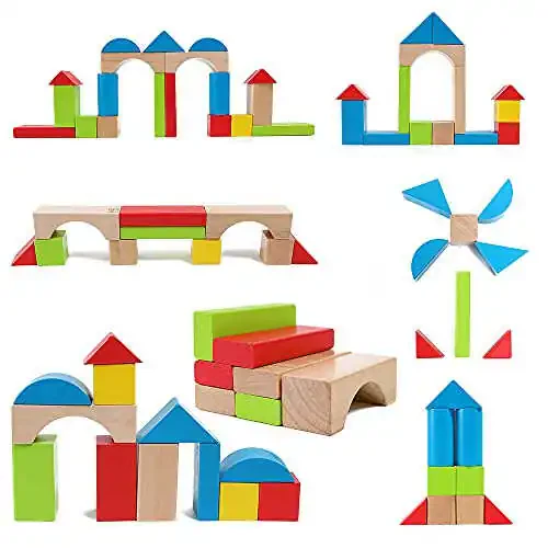 Hape tomonidan qayin yog'ochidan yasalgan bolalar qurilish bloklari kichik qurilishchilar uchun mukammal sovg'a. 50 ta yorqin rangli blok turli shakl va o'lchamlarda keladi, bu esa ijodiy qurilish uchun cheksiz imkoniyatlarni taqdim etadi. Bloklarning silliq qirralari chaqaloqlar uchun xavfsiz o'ynashni ta'minlaydi va tabiiy qayin yog'ochidan yasalganligi ularni barqaror va bardoshli qiladi. Bolalar minoralar, uylar, qal'alar va boshqalarni qurib, tasavvurlarini va nozik motor ko'nikmalarini rivojlantirishi mumkin.
