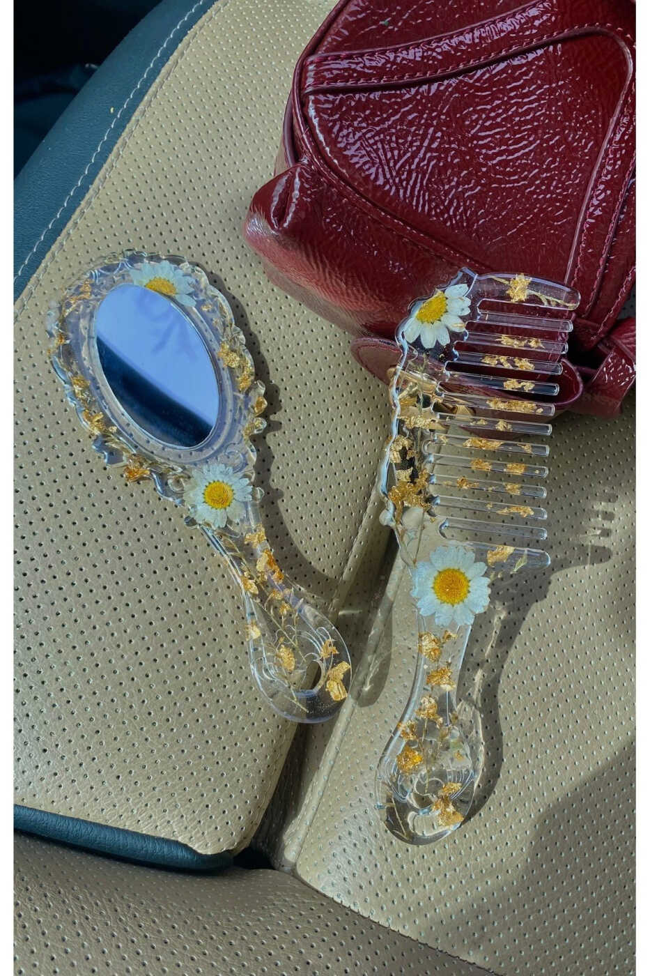 Nozik va tabiiy sovgʻa yoki mehrga toʻla toʻplam izlayotganlar uchun ajoyib tanlov! Ushbu qoʻl bilan tayyorlangan toʻplam haqiqiy quritilgan romashkalar bilan bezatilgan nafis tarak va koʻzgu oʻz ichiga oladi. Romashkalarning tabiiy goʻzalligi va tarak bilan koʻzguning oqlangan dizayni ushbu toʻplamni noyob sovgʻa variantiga aylantiradi.