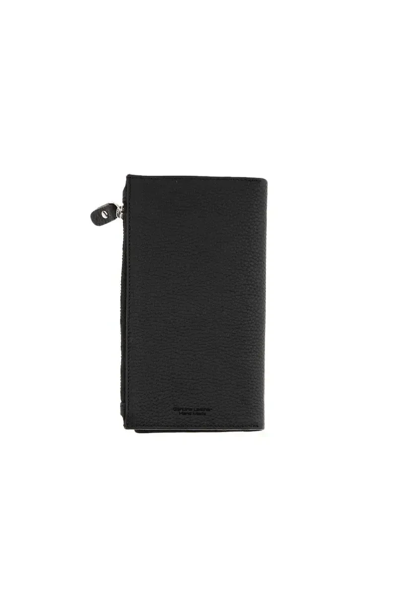 Qora tugma bilan yopiladigan haqiqiy charm hamyon