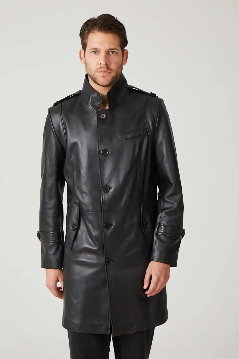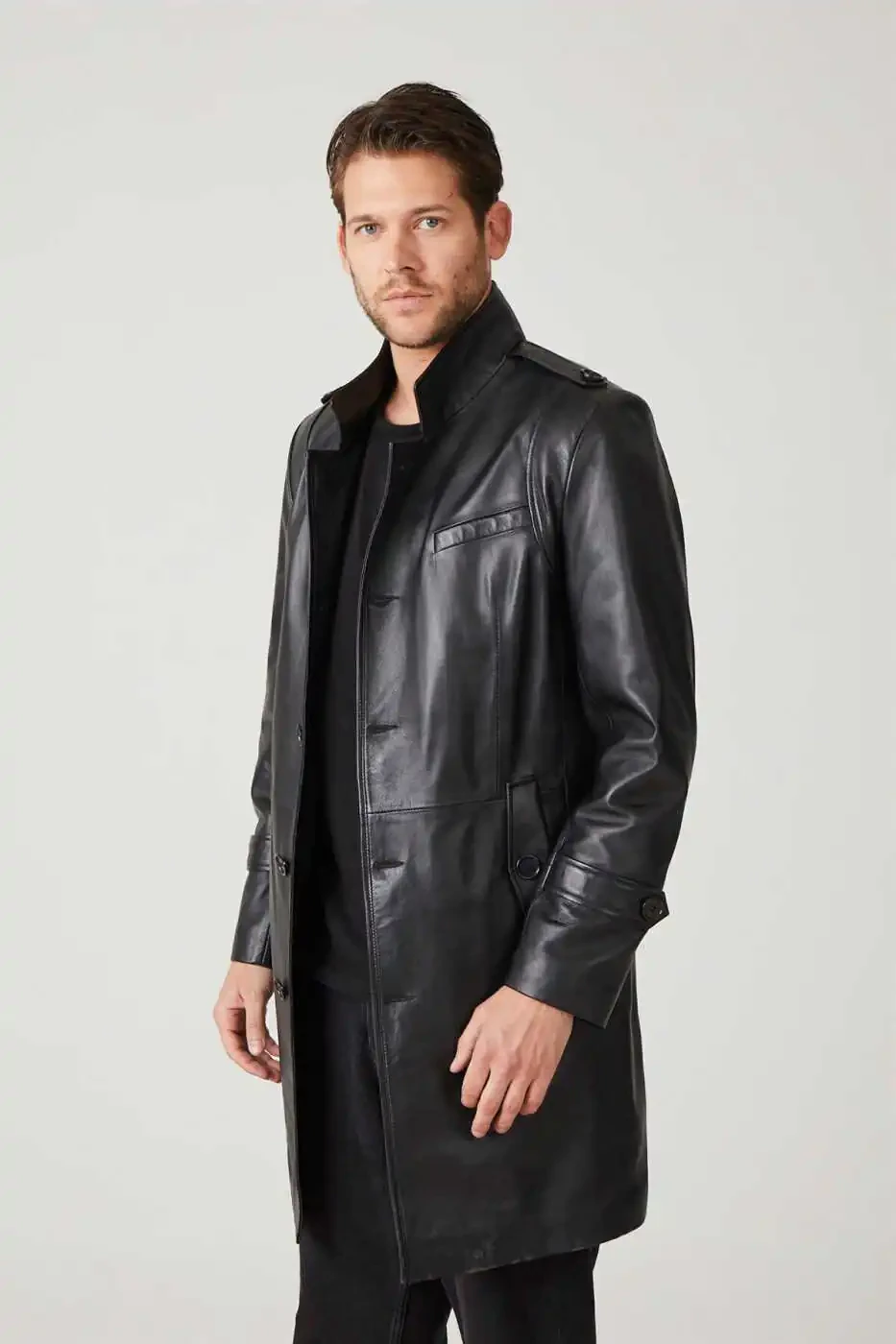 Qora Darryl erkaklar uchun tugmali, astarli, epoleti, yirtiq, turuvchi yoqa, tor kesimli haqiqiy charm paltosi o'zingizga yoki yaqinlaringizga nafis va sifatli sovg'a sifatida ham tanlanishi mumkin.