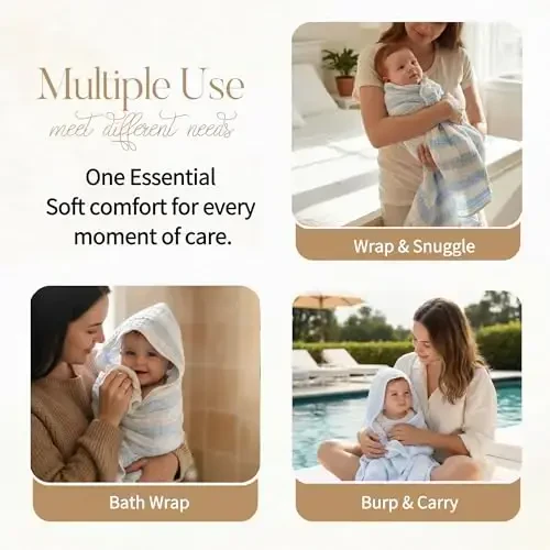 Максимально повысьте комфорт и безопасность вашего ребенка после купания с помощью набора из 4 муслиновых полотенец с капюшоном HardNok. Эти детские банные полотенца из 6 слоев натурального хлопка, изготовленные из высококачественной муслиновой ткани, идеально подходят для мальчиков и девочек, отличаются мягкой текстурой и впитываемостью. Эти полотенца размером 32 x 32 дюйма универсальны и подходят не только для купания, но и для пляжа, бассейна или дома. Муслиновые полотенца HardNok разработаны с учетом чувствительной кожи вашего ребенка и изготовлены из натурального хлопка, не содержащего химических веществ. Это сводит к минимуму риск аллергических реакций на коже вашего ребенка. 6-слойная муслиновая структура быстро впитывает воду, предотвращая переохлаждение ребенка и сохраняя его в тепле. В то же время легкая и дышащая структура предотвращает потоотделение и позволяет коже вашего ребенка дышать. Муслиновое полотенце с капюшоном HardNok нежно касается нежной кожи вашего ребенка и успокаивает его. Конструкция с капюшоном сохраняет тепло головы и шеи вашего ребенка, предотвращая простуду. Большие размеры позволяют полностью обернуть ребенка и заставить его чувствовать себя в безопасности. Эти полотенца можно использовать не только после купания, но и в качестве пеленки, игрового коврика, накидки для коляски. Они очень практичны для путешествий или домашнего использования. Благодаря мешку для стирки, входящему в комплект, вы можете легко стирать полотенца при низкой температуре и содержать их в чистоте. Краевые швы предотвращают изнашивание и деформацию полотенец. Компания HardNok желает всего наилучшего новым родителям. Нет ничего прекраснее, чем рождение ребенка. Мы всегда ставим во главу угла удовлетворенность клиентов и предлагаем возможность возврата, если вы не удовлетворены нашей продукцией. Эти стильные и практичные детские полотенца в синюю полоску и белого цвета сделают купание вашего ребенка более приятным и безопасным. Поставьте комфорт и здоровье своего ребенка на первое место с муслиновым полотенцем с капюшоном HardNok. Более того, это идеальный выбор не только для младенцев, но и для взрослых с чувствительной кожей. Натуральные, мягкие и удобные муслиновые полотенца HardNok станут незаменимыми для вашей семьи.