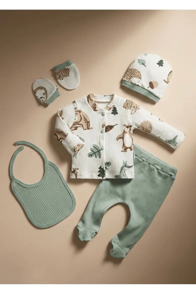 Hastane Çıkışı 100% Pamuk Ayıcık Baskılı Yenidoğan 5li Set Bebek Kıyafeti