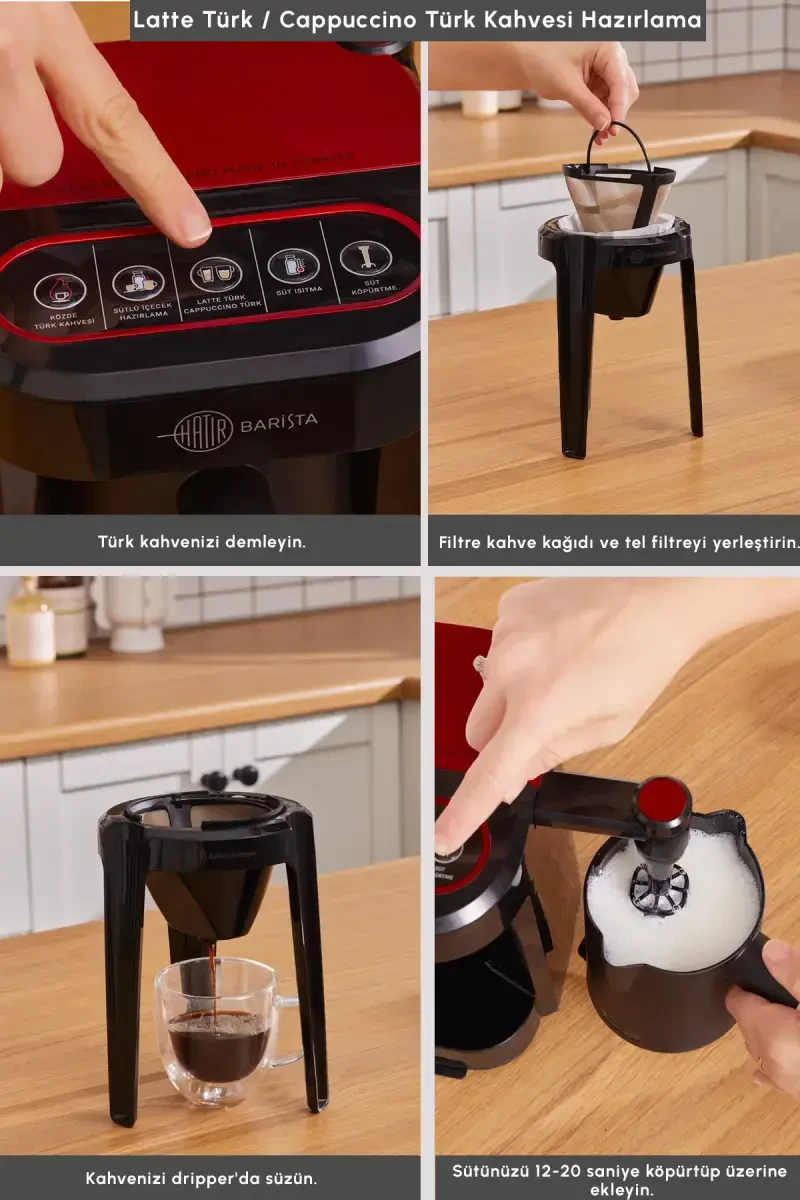 С кофеваркой Karaca Hatır Barista Cappuccino и турецким кофе вы выведете удовольствие от кофе на новый уровень! Этот специальный дизайн цвета Imperial Red, который привнесет стиль и элегантность на вашу кухню, позволяет вам испытать не только турецкий кофе, но и совершенно новые итальянские вкусы. Готовить различные виды кофе, такие как Latte Türk и Cappuccino Türk, стало намного проще. Karaca Hatır Barista мощностью 735 Вт станет вашим самым большим помощником на кухне, предлагая быструю и эффективную работу. Эта машина идеально подходит для любителей молочного кофе в дополнение к традиционному турецкому кофе и позволяет приготовить несколько чашек за один раз благодаря объему 300 мл. Благодаря насадке для вспенивания молока вы можете украсить свой кофе насыщенной и густой пеной и делать профессиональные презентации, как настоящий бариста. Ваш кофе будет иметь идеальную консистенцию благодаря специальной джезве Barista с носиком. Вы можете легко получить доступ к своим любимым рецептам благодаря информационному ящику под ним и всегда держать его под рукой. Karaca Hatır Barista, которая идеально подходит для тех, кто ищет вкус турецкого кофе, приготовленного на углях, гарантирует, что вы всегда будете использовать нужное количество кофе благодаря мерной ложке для кофе. Благодаря функции автоматического выключения устройство автоматически выключается после приготовления кофе, что обеспечивает безопасное и практичное использование. Легко очищаемая джезва и щетка с технологией Quick Clean обеспечивают простоту использования. Эта машина предлагает безопасное использование благодаря беспроводной конструкции и системе защиты от использования без добавления воды, а также информирует вас после приготовления с помощью звуковой сигнализации и системы предупреждений. С Karaca Hatır Barista каждая чашка кофе станет восхитительным ритуалом. Когда вы собираетесь вместе со своими близкими или делаете себе особый перерыв, вы всегда можете приготовить идеальный кофе с помощью этой машины. Приготовьте кофе по своему вкусу с Karaca Hatır Barista, будь то традиционный турецкий кофе или молочный и пенистый напиток, и наслаждайтесь удовольствием от кофе.
