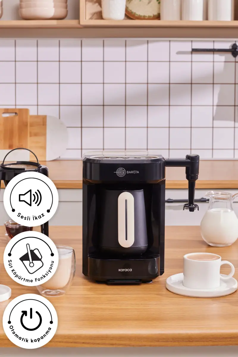 Karaca Hatır Barista Cappuccino ve Türk Kahve Makinesi Krem, kahve tutkunları için evde barista deneyimi yaşatacak çok yönlü bir üründür. Şık krem rengiyle mutfağınıza estetik bir dokunuş katan bu makine, hem geleneksel Türk kahvesini hem de dünya kahvelerini hazırlama imkanı sunar. Güçlü performansı, kullanıcı dostu özellikleri ve pratik temizleme kolaylığı sayesinde kahve keyfinizi her zaman en üst düzeye çıkarır. 735 W gücüyle hızlı ve etkili bir şekilde çalışan bu makine, dayanıklı cezvesiyle uzun ömürlü kullanım vadeder. Otomatik Türk kahvesi makinesi özelliği, kahvenizin her zaman ideal kıvamda olmasını sağlarken, sesli ikaz sistemi sayesinde kahvenizin hazır olduğunu anında fark edebilirsiniz. 5 fincan kapasiteli geniş haznesi, misafirlerinizi ağırlarken ya da ailenizle keyifli sohbetler eşliğinde kahve içmek istediğinizde idealdir. Sadece Türk kahvesiyle sınırlı kalmayıp, süt köpürtme aparatı sayesinde cappuccino, latte gibi İtalyan lezzetlerini de kolayca hazırlayabilirsiniz. Dripper aparatı sayesinde latte yapımı hiç olmadığı kadar kolay hale gelirken, süt ısıtma özelliği sayesinde farklı sütlü içecekleri de kısa sürede hazırlayabilirsiniz. Modern ısıtma sistemi, kahvenizin tadını en iyi şekilde çıkarmanızı sağlarken, otomatik kapanma özelliği sayesinde güvenli bir kullanım sunar. Taşma emniyeti özelliği sayesinde de olası kazaların önüne geçilir. Quick Clean teknolojisi ve beraberinde gelen temizleme fırçası, makinenin temizliğini son derece pratik hale getirir. Karaca Hatır Barista ile evinizin konforunda, profesyonel bir barista gibi lezzetli ve yumuşak içimli kahveler hazırlayabilir, kahve keyfinizi kişiselleştirebilirsiniz. Bu ürün NorthStarr tarafından gönderilmektedir ve belirli bir stokla sınırlıdır. Birden fazla satıcı tarafından satışa sunulan bu ürün, satıcıların fiyat, puan, teslimat durumu, promosyon, kargo bedava olup olmaması, hızlı teslimat ve stok bilgileri gibi kriterlere göre sıralanmaktadır. Bu üründen en fazla 2 adet sipariş verilebilir ve 15 gün içinde ücretsiz iade imkanı bulunmaktadır.