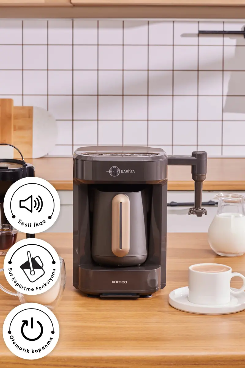 Hatır Barista Türk Kahve Makinesi Walnut Brown-Kahverengi ile geleneksel Türk kahvesi lezzetini modern teknolojiyle buluşturun. Bu şık ve kullanışlı kahve makinesi, tek tuşla bol köpüklü, tam kıvamında Türk kahvesi hazırlamanızı sağlar. Walnut Brown rengiyle mutfağınıza sıcak ve zarif bir dokunuş katan Hatır Barista, cezve derdine son vererek size pratik bir kahve deneyimi sunar. Otomatik demleme özelliği sayesinde kahvenizi ideal sıcaklıkta ve kıvamda pişirirken, taşmayı önleyen akıllı sensörleri ile güvenli bir kullanım sağlar. Artık misafirlerinize veya kendinize mükemmel bir Türk kahvesi ikram etmek için saatlerce uğraşmanıza gerek yok. Hatır Barista, kahve keyfinizi her zaman bir üst seviyeye taşır. İster yoğun bir iş gününün ardından dinlenmek için, ister arkadaşlarınızla keyifli sohbetler eşliğinde, her an taze ve lezzetli kahvenin tadını çıkarabilirsiniz. Kompakt tasarımı sayesinde mutfağınızda fazla yer kaplamaz ve kolayca temizlenebilir. Kahve tutkunları için vazgeçilmez bir ürün olan Hatır Barista, hem ev hem de ofis kullanımı için ideal bir seçimdir. Geleneksel lezzeti modern kolaylıkla bir araya getiren bu kahve makinesi, size her fincanda aynı mükemmel tadı sunar. Walnut Brown rengiyle de şıklığından ödün vermeyen Hatır Barista, mutfağınızın en gözde parçası olacak. Türk kahvesi demleme sürecini basitleştirerek, kahve keyfinizi her zamankinden daha pratik ve keyifli hale getirir. Kahve hazırlama derdine son vermek ve her zaman taze, bol köpüklü kahve içmek isteyenler için Hatır Barista, mükemmel bir tercihtir. Unutmayın, iyi bir kahve günü güzelleştirir, Hatır Barista ise her gününüzü!