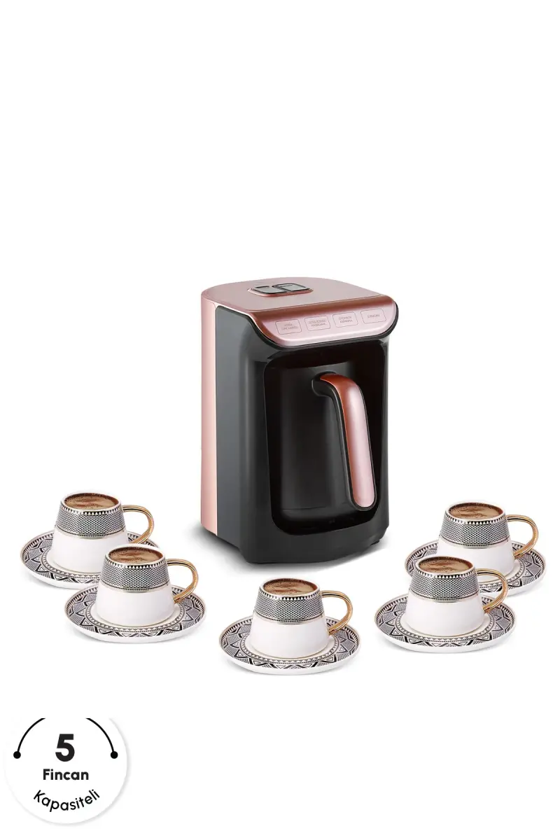 Roseberry Türk Kahvesi Makinesi ve Hatır Közde Türk Kahvesi ile geleneksel Türk kahvesi ritüelinizi modern bir dokunuşla yeniden keşfedin. Bu özel set, Türk kahvesinin otantik lezzetini en pratik ve keyifli şekilde deneyimlemenizi sağlar. Roseberry Türk Kahvesi Makinesi, közde pişirme teknolojisi sayesinde kahvenizi tıpkı geleneksel yöntemlerle pişirilmiş gibi bol köpüklü ve tam kıvamında hazırlar. Makinenin 5 fincan kapasitesi, kalabalık misafirlerinize ya da ailenizle birlikte keyifli kahve sohbetlerine eşlik etmek için idealdir. Otomatik sıcaklık ve köpük ayarı sayesinde, her fincan kahveniz aynı mükemmel lezzette olurken, taşma önleyici sensör özelliği sayesinde de güvenlik ve kullanım kolaylığı sağlanır. Roseberry'nin şık ve zarif tasarımı mutfağınıza estetik bir dokunuş katarken, kolay temizlenebilir yapısı da size zaman kazandırır. Hatır Közde Türk Kahvesi ise, özenle seçilmiş en kaliteli kahve çekirdeklerinden üretilmiştir. Bu özel kahve, közde pişirme tekniğiyle uyumlu olarak öğütülmüş ve paketlenmiştir, böylece Roseberry Türk Kahvesi Makinesi ile birlikte kullanıldığında en iyi sonucu verir. Kahvenin yoğun aroması ve zengin lezzeti, her yudumda sizi cezbedecek ve geleneksel Türk kahvesi deneyimini en üst düzeye çıkaracaktır. Bu set, sadece bir kahve makinesi ve kahve değil, aynı zamanda sevdiklerinizle birlikte paylaşacağınız keyifli anların ve unutulmaz sohbetlerin de başlangıcıdır. Geleneksel Türk kahvesi lezzetini modern teknolojiyle bir araya getiren bu set, hem kendiniz hem de sevdikleriniz için mükemmel bir hediye seçeneği olabilir. Roseberry Türk Kahvesi Makinesi ve Hatır Közde Türk Kahvesi ile her fincan kahvenizi bir şölene dönüştürün. Üstelik, makinenin sunduğu kullanım kolaylığı ve hızlı hazırlama özelliği sayesinde, yoğun günlerinizde bile Türk kahvesi keyfinizden ödün vermek zorunda kalmazsınız. Otomatik kapanma özelliği sayesinde de güvenli bir kullanım deneyimi sunar. Mutfağınızın vazgeçilmezi olacak bu set ile her zaman taze ve lezzetli Türk kahvesinin tadını çıkarabilirsiniz.