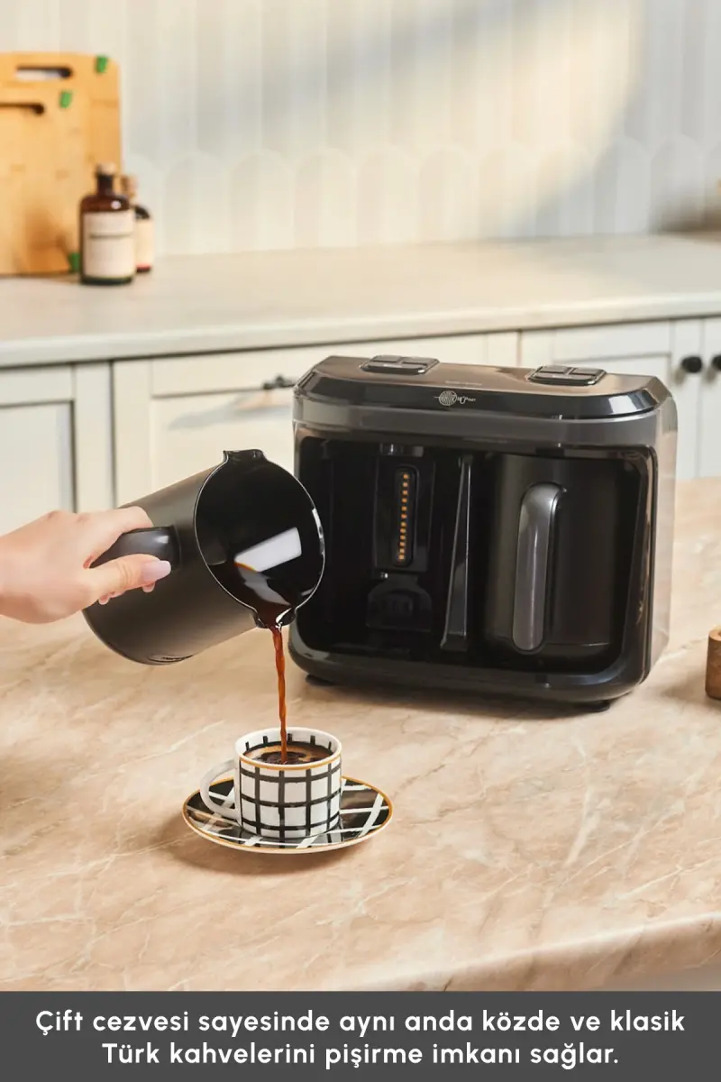 1350 WBir vaqtning o'zida 4 chashka qahvaBir tugma bilan oson foydalanishTo'kilishning oldini oluvchi aqlli sensorZanglamaydigan po'latdan yasalgan idishOvozli va yorug'likli ogohlantirish tizimiSuv tugash xavfsizligiHaddan tashqari qizib ketishdan himoya3 yil kafolatTurk qahvasining ta'mini to'liq his qilingKo'pikli qahvalarPatentlangan idish dizayniBir vaqtning o'zida turli xil ta'mli qahva tayyorlash imkoniyatiPast shovqinli ishlashJoyni tejaydigan ixcham dizayn