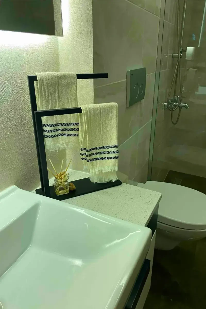 Şık ve modern tasarımıyla banyonuza zarafet katacak Havluluk Tezgah Üzeri Kağıt El Havluluğu, AJU Concept güvencesiyle sizlerle! Bu çok fonksiyonlu düzenleyici, havlularınızı ve kağıt havlularınızı düzenli bir şekilde saklamanıza yardımcı olurken, aynı zamanda banyonuzda yer tasarrufu sağlar. Dayanıklı paslanmaz metal malzemesi ve montaj gerektirmeyen yapısıyla uzun ömürlü kullanım sunar. Ağır tabanı sayesinde devrilme endişesi olmadan güvenle kullanabilirsiniz. Altına takılan özel keçeler sayesinde zeminde çizilme yapmaz ve herhangi bir düz yüzeye kolayca yerleştirilebilir. Duvar delme veya karmaşık kurulum adımları gerektirmez, sadece istediğiniz yere koyun ve kullanmaya başlayın! Havluluk, şık siyah, beyaz ve dore gold renk seçenekleriyle banyonuzun dekorasyonuna mükemmel uyum sağlar. AJU atölyelerinde özenle üretilen bu havlu ve kağıt havlu tutacağı, ekstra döküm alaşımlı metalden imal edilmiş olup elektrostatik toz boyalıdır. Bu sayede çizilmelere ve paslanmaya karşı dayanıklıdır, uzun yıllar boyunca ilk günkü şıklığını korur. %100 yerli üretim olan bu ürün, kalitesiyle diğer markalardan ayrışır. Fiyat performans açısından rakipsiz olan bu havlu tutacağı ile banyonuzu şımartın. Sadece 100 adetten fazla stoklarımızla sınırlı süreli kampanyamızdan yararlanın!