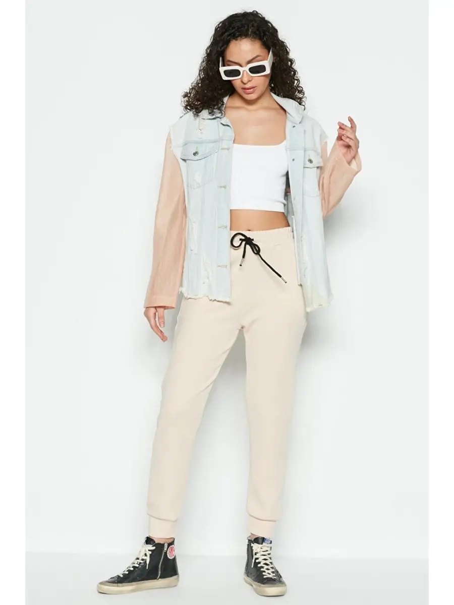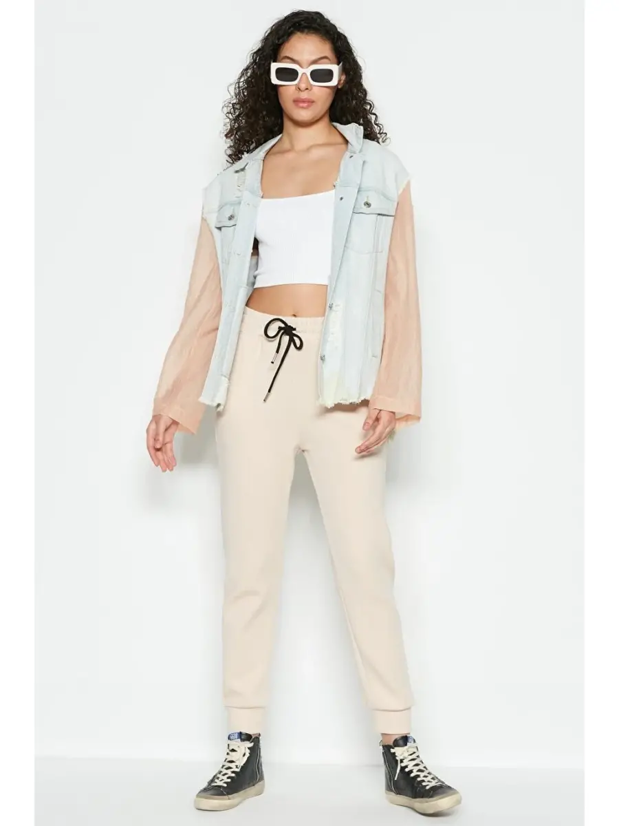 Headline Cuff Sweatpants, cotton fabric, cream-ecru color, comfortable fit, side pockets.